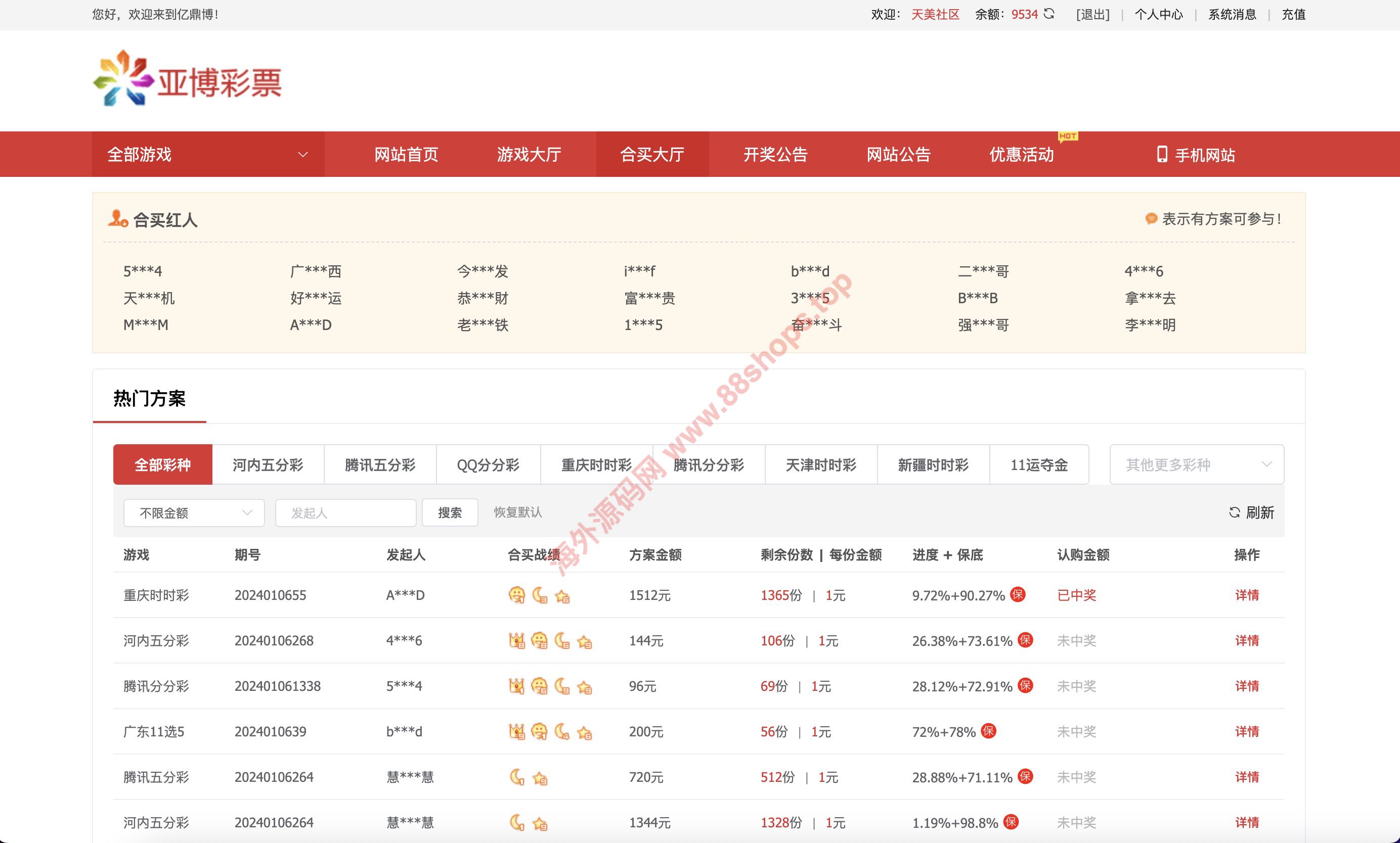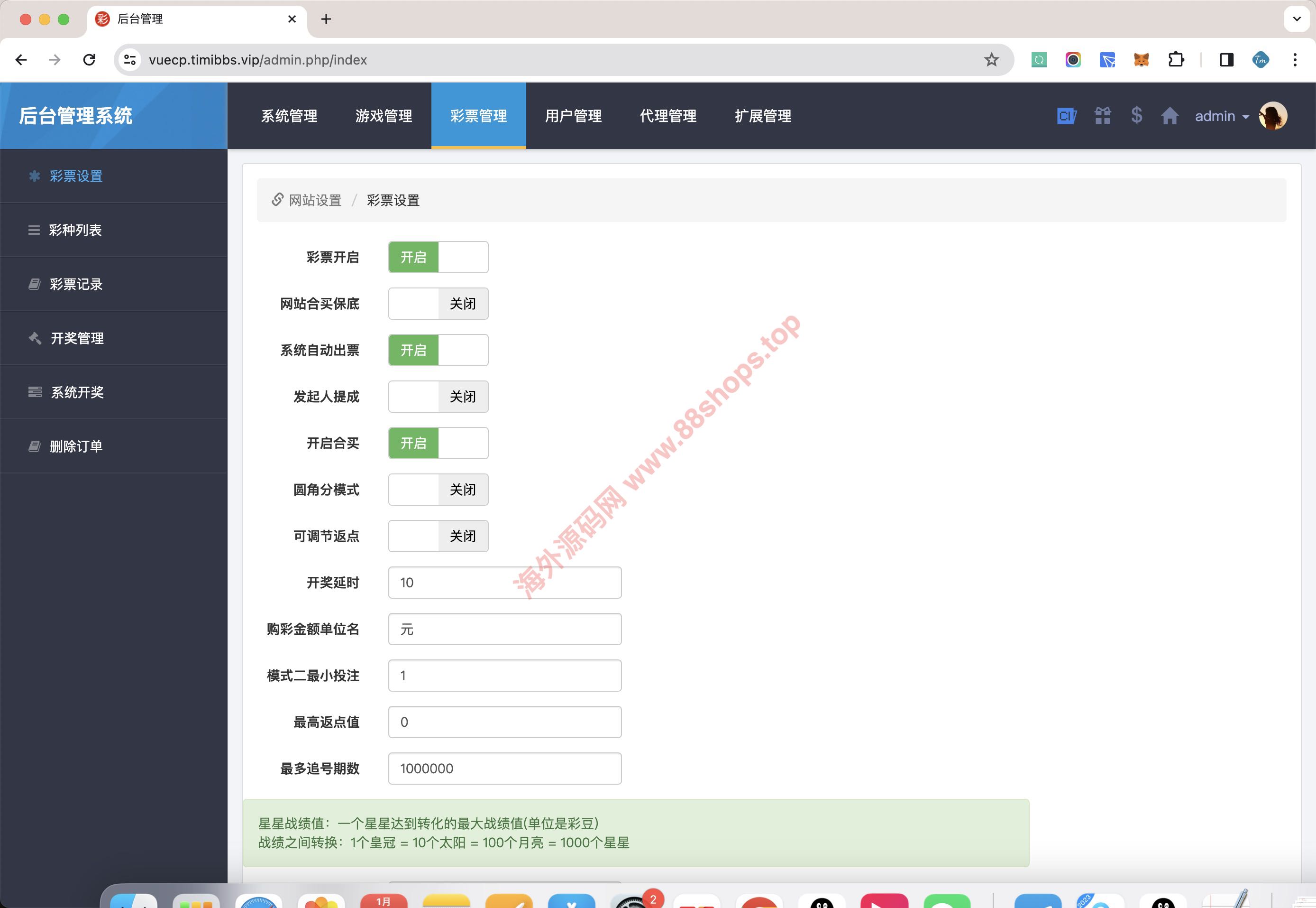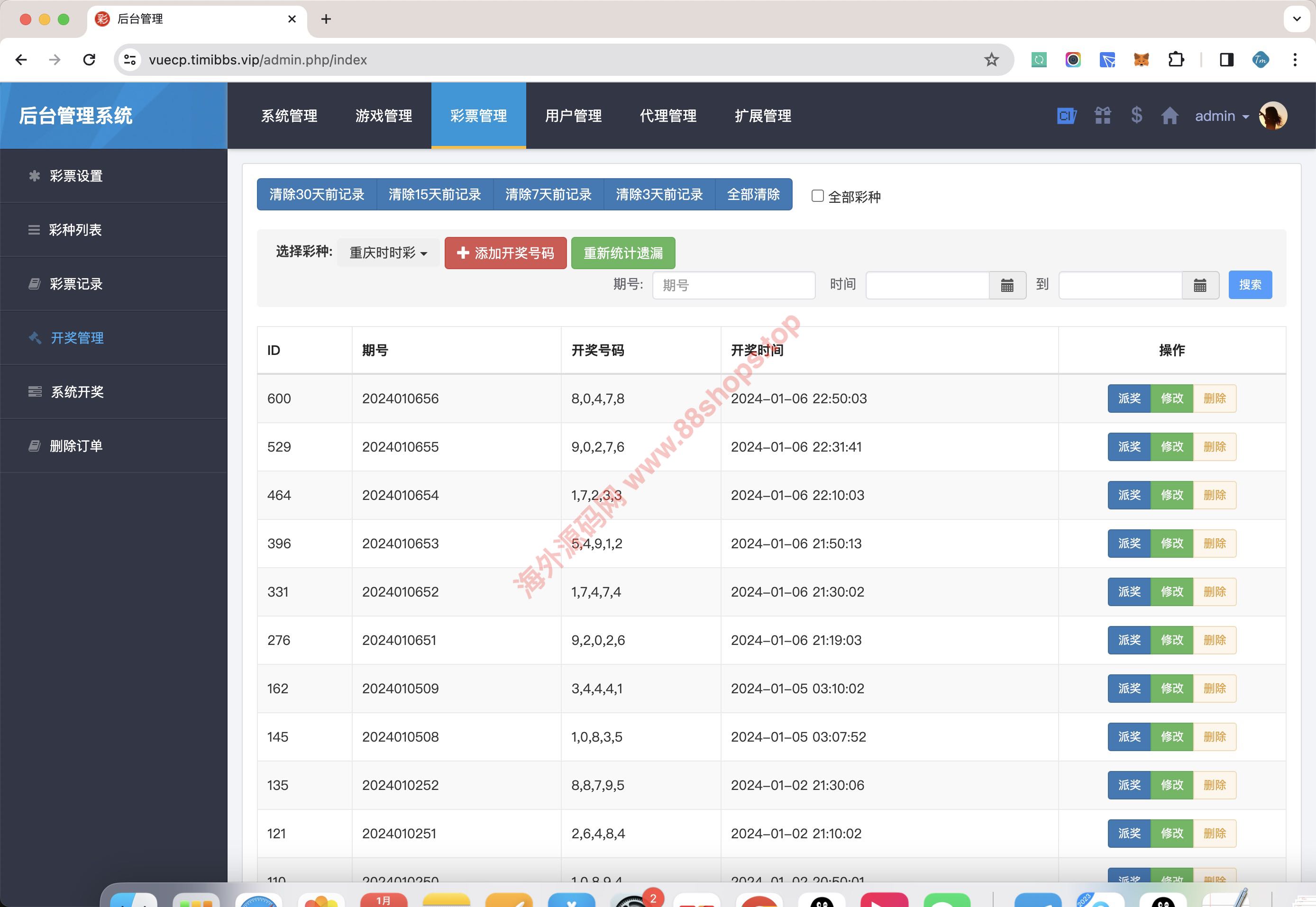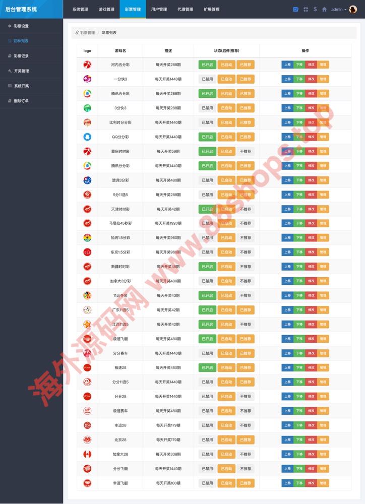 修复了一些小bug,采集的接口也修复了十来个,总的彩种有好几十个,每一个都可以修复采集,也有系统彩,后台可以预设开奖,可以调整胜率(这个没有测试,不清楚是否有效)