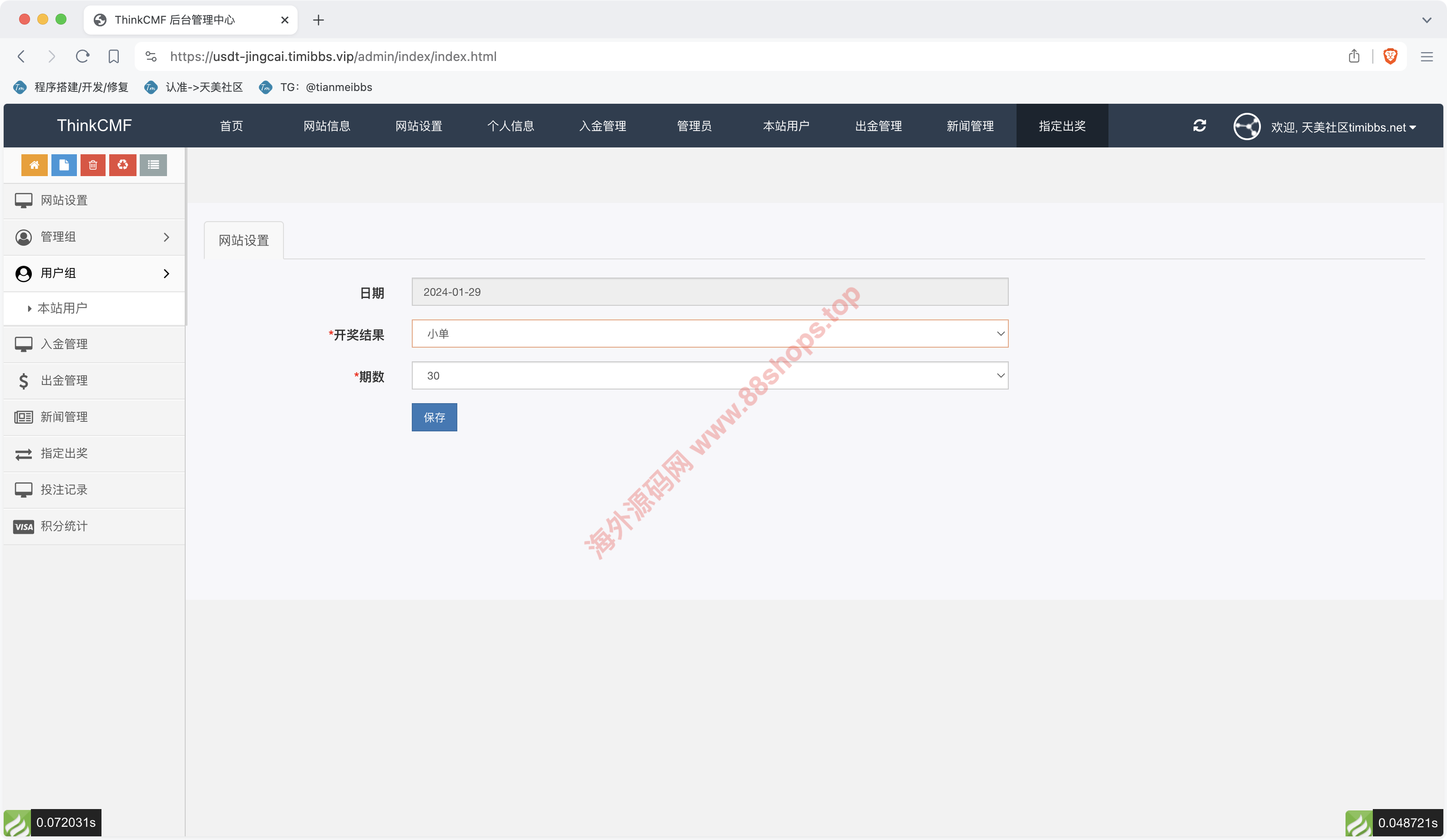 前端html,后端thinkcmf框架,算是一个新玩法,这些人才是什么东西都想得出来,做成的USDT-PC28玩法,开奖是5分钟一期的