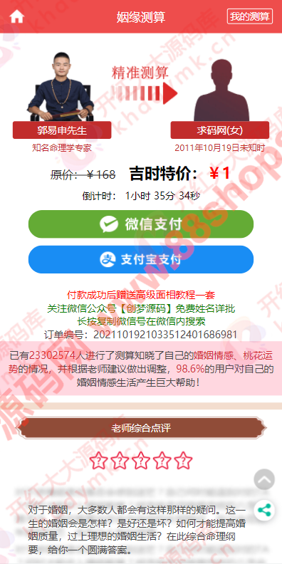 支付版开运网站/在线算命起名/姻缘易经周易占卜/附带