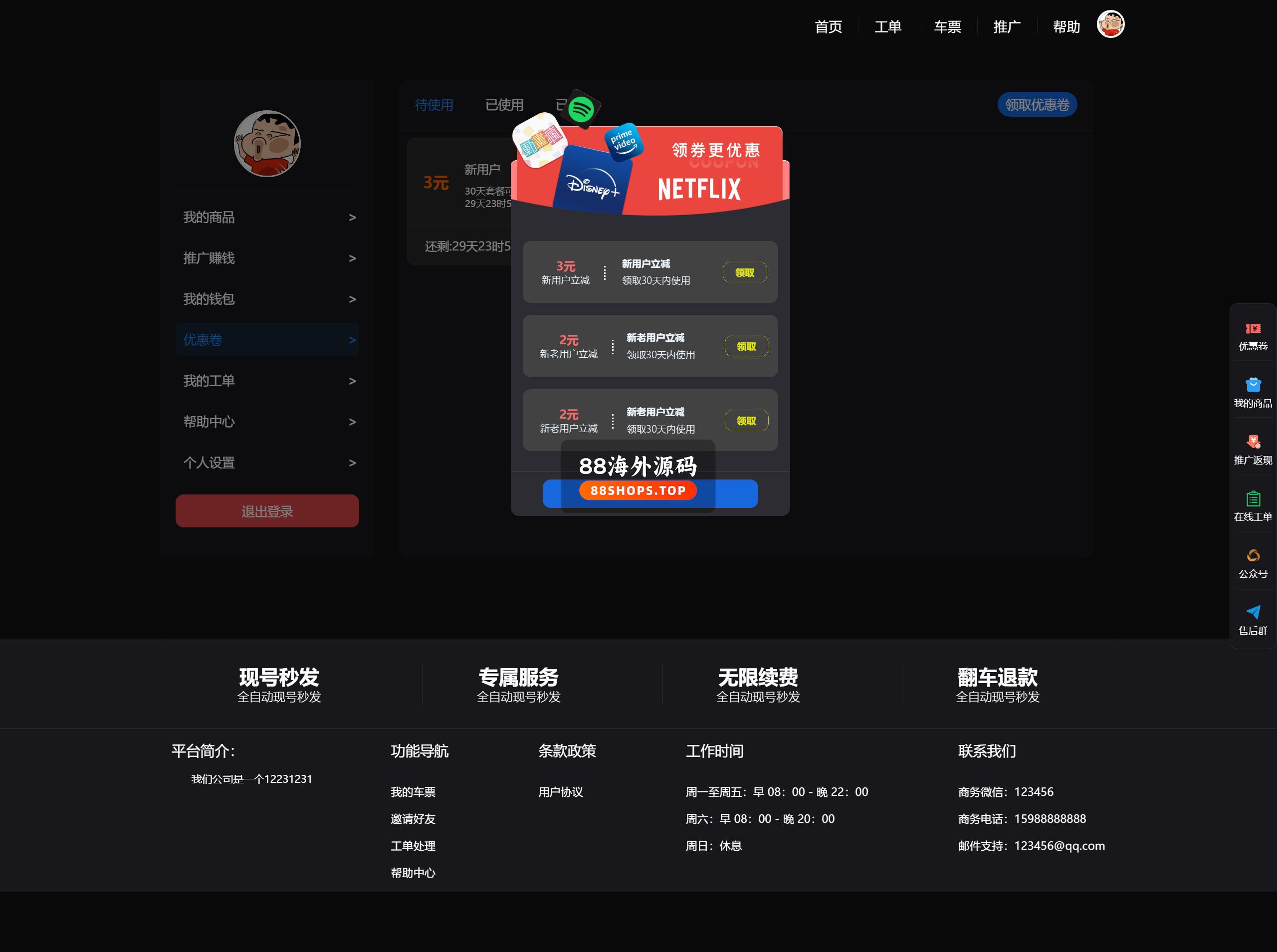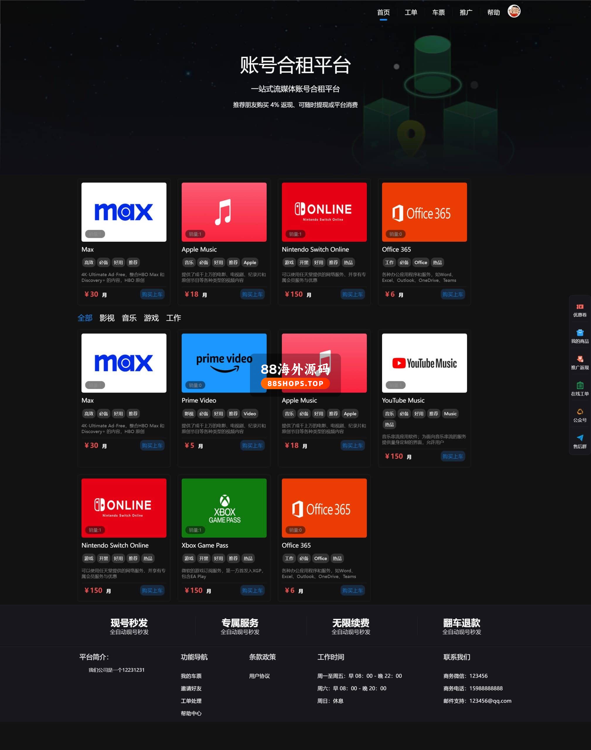 这是一款租号平台源码,采用常见的租号模式。目前网络上还很少见到此类类型的源码。
