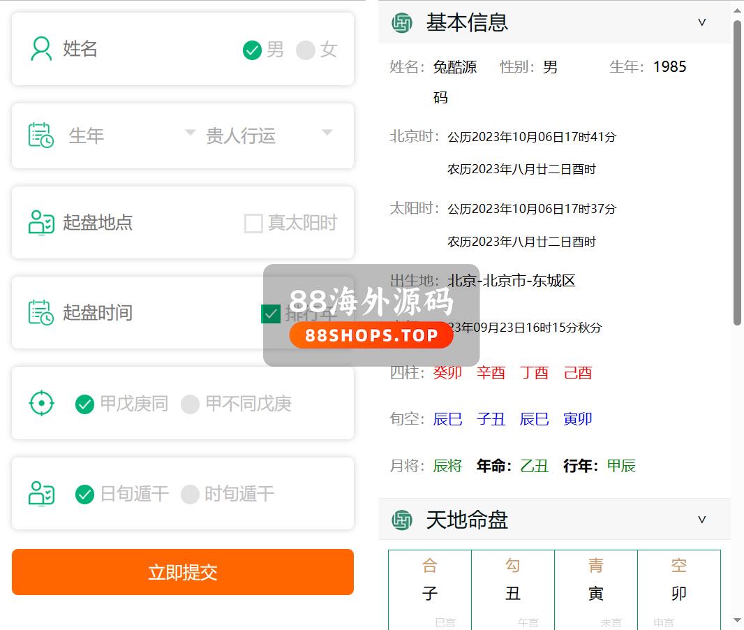 全网首发,八字排盘源码_星天文历源码_黄道日历源码。大六壬排盘程序,由于项目复杂性,仅有PHP版提供,开源无马可二开。