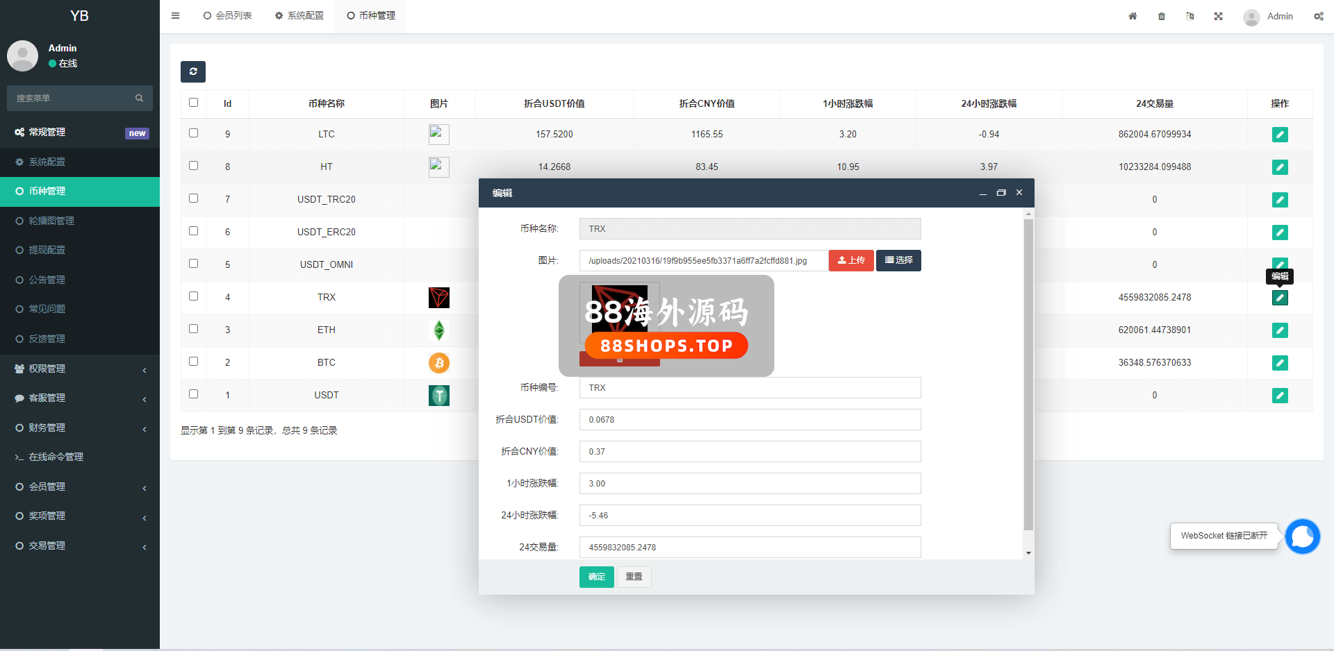 首页虚拟币价格跳动好像需要对接火币,后台留有对接接口