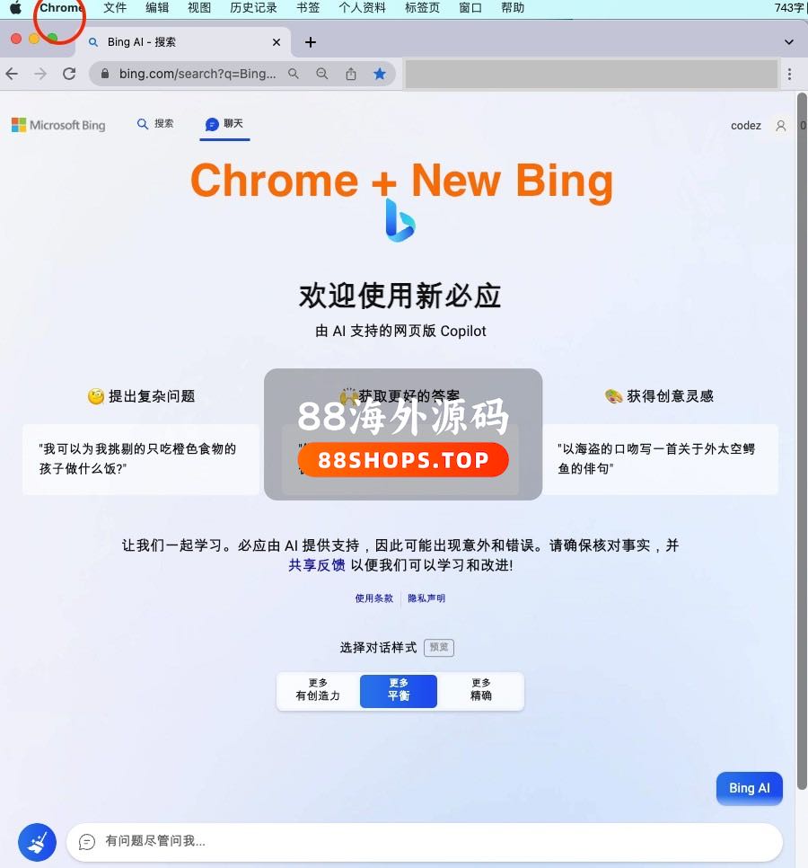 微软 New Bing 完美聊天机器人源码,支持 ChatGPT 提示词,拥有一致的 UI 体验,国内可用,基本兼容微软 Bing AI 所有功能
