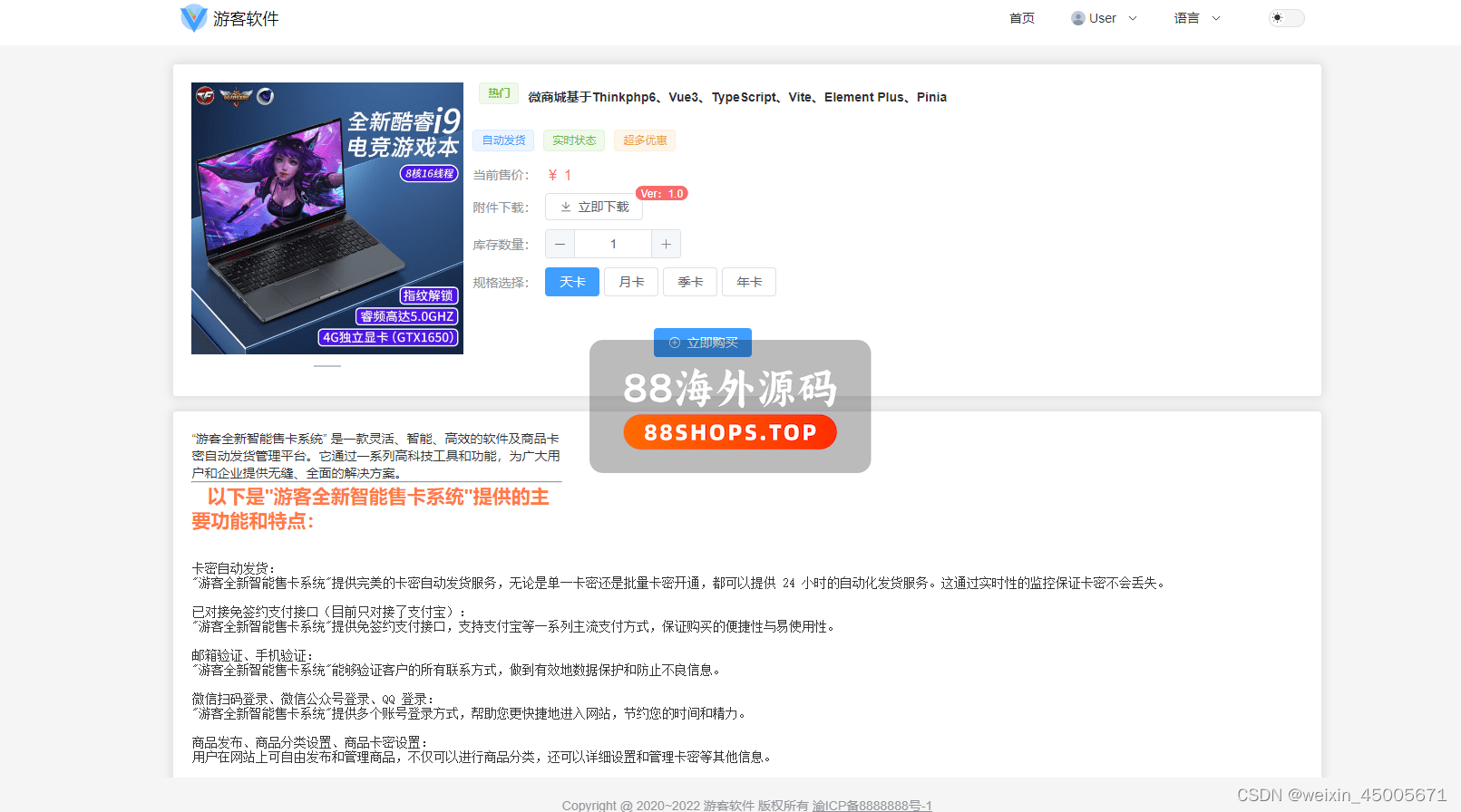 Thinkphp+vue+nuxt支持多平台免签支付的自动发卡售卡系统前后端分离,性能最佳