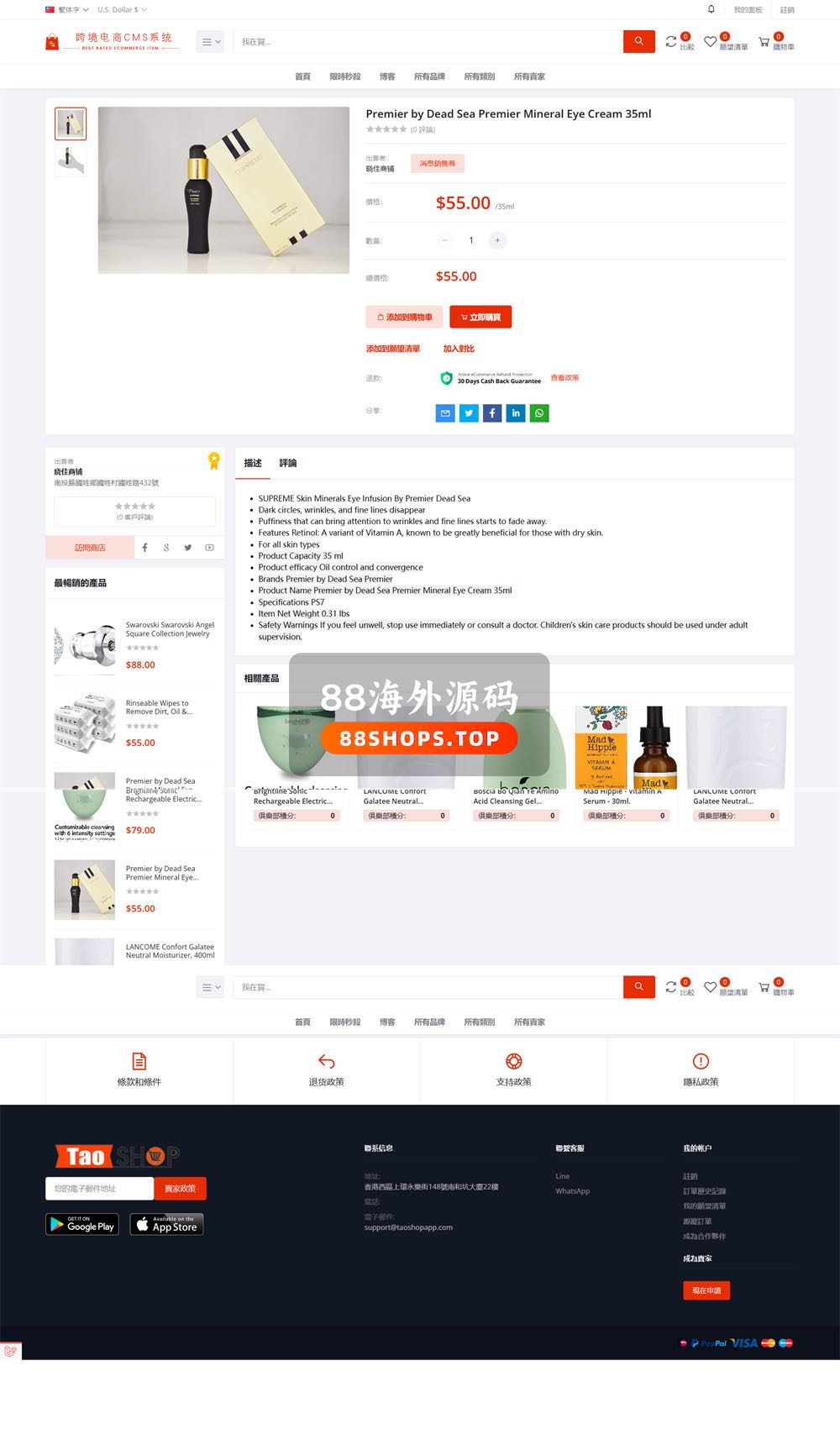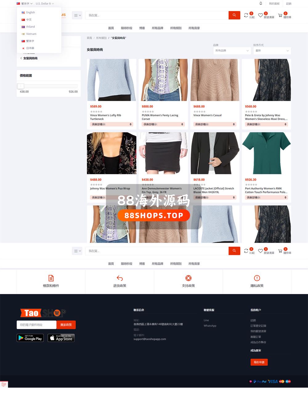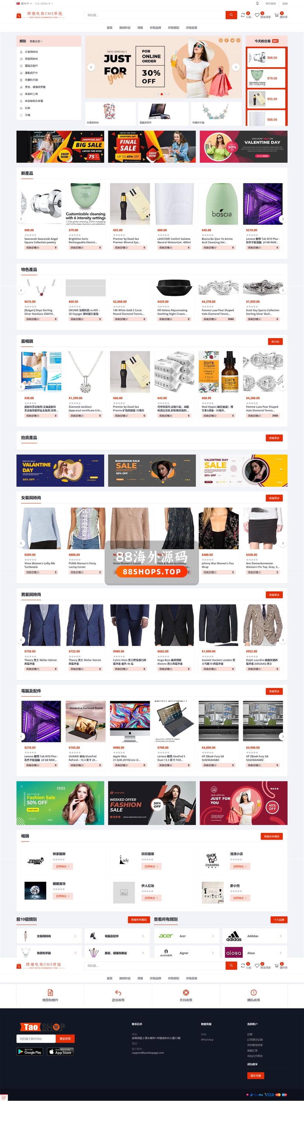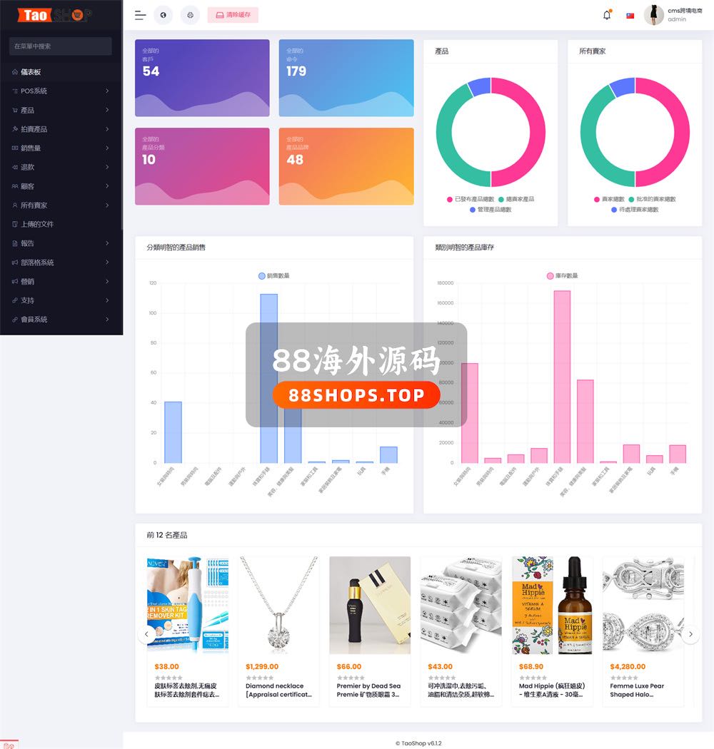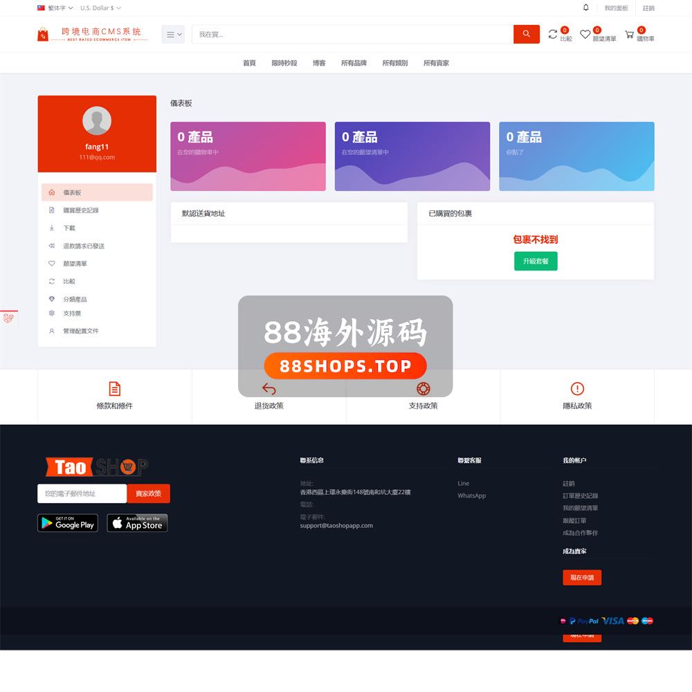 英文,简体中文,繁体中文,日语、泰语、越南语6语言。功能非常强大,UI也很漂亮的跨境电商源码。基于国外成熟电商系统二开的源码,带POS系统。