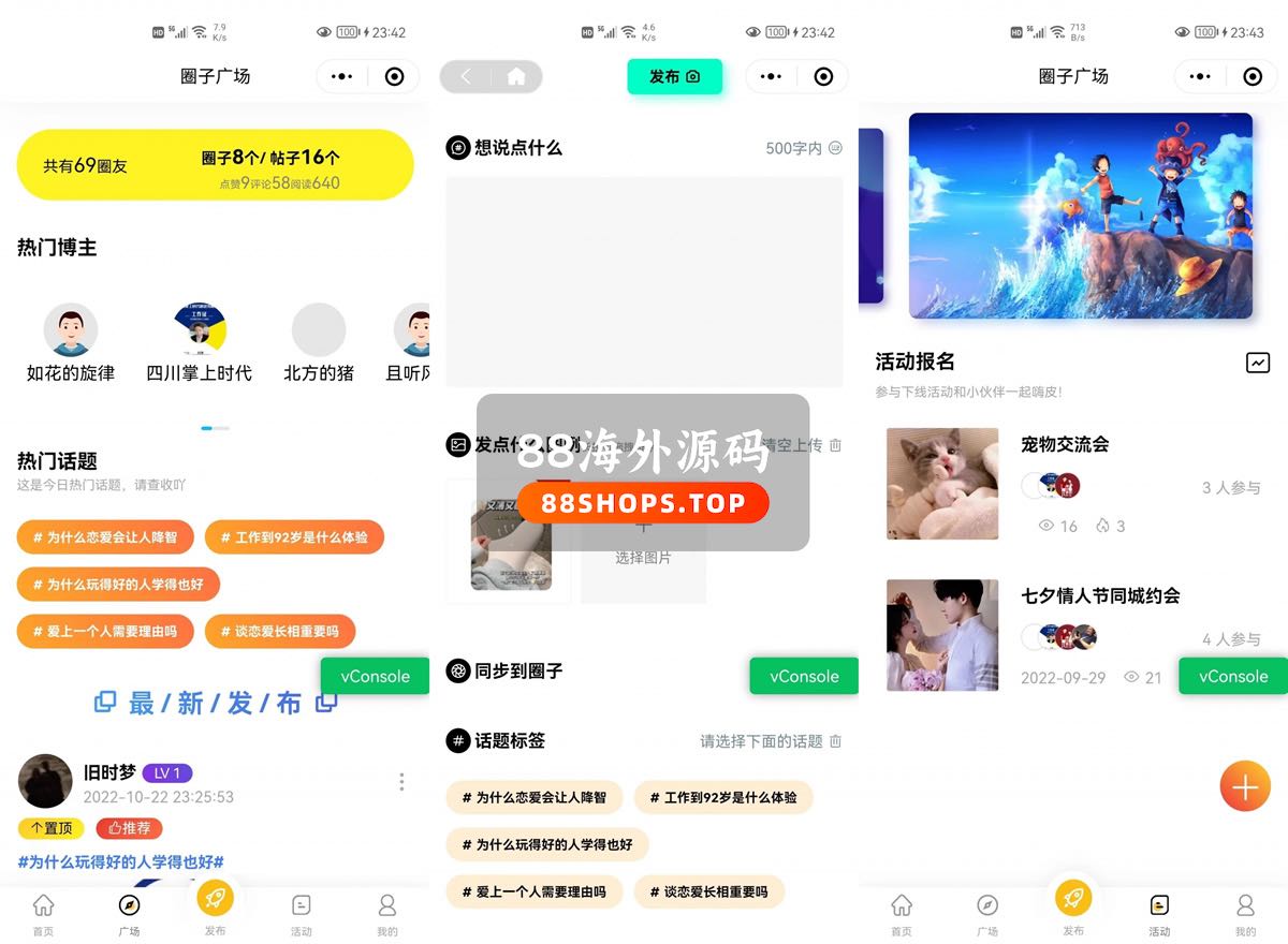 小程序/app/H5多端圈子社区论坛系统,交友/博客/社交/陌生人社交,即时聊天,私域话题,社区论坛圈子,信息引流小程序源码,广场/微校园/微小区/微同城/