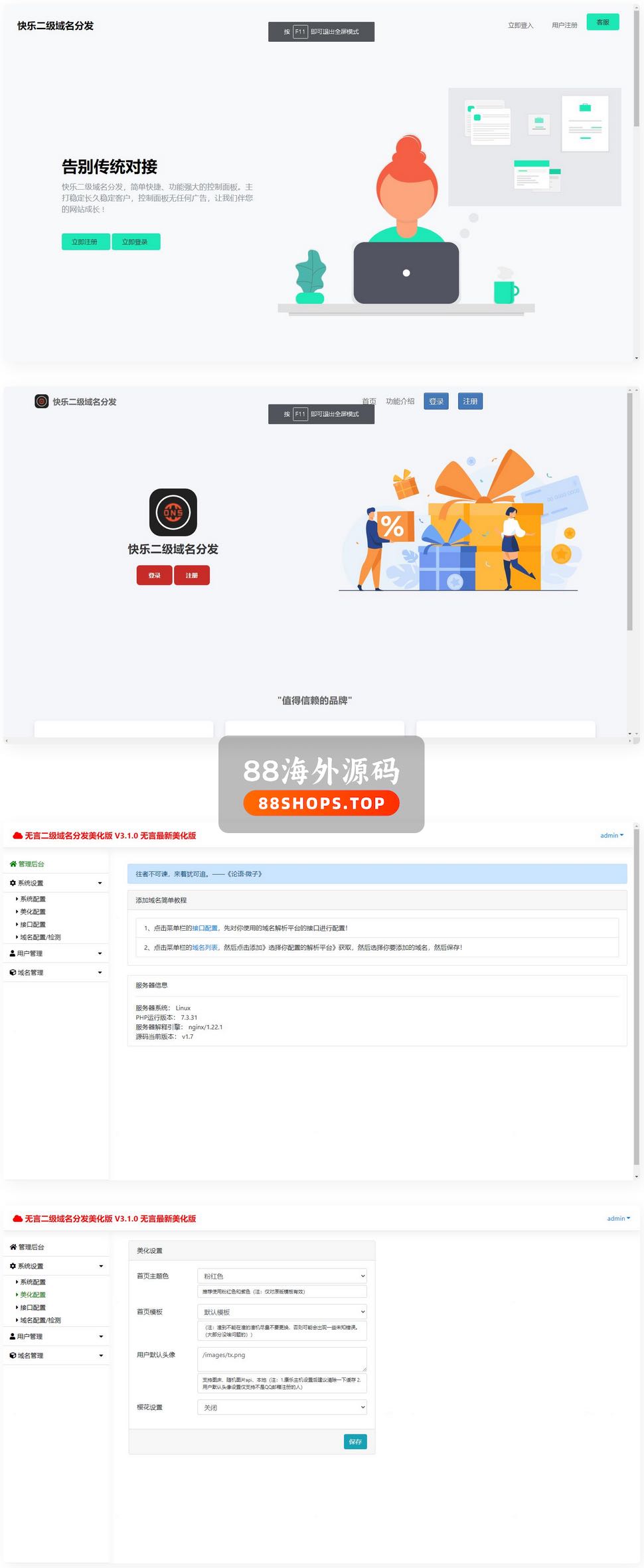 快乐二级域名分发系统重置版v1.7源码,简单快捷、功能强大的控制面板。主打稳定长久稳定客户,控制面板无任何广告,让我们伴您的网站成长 !