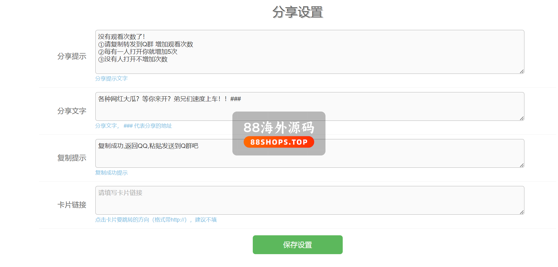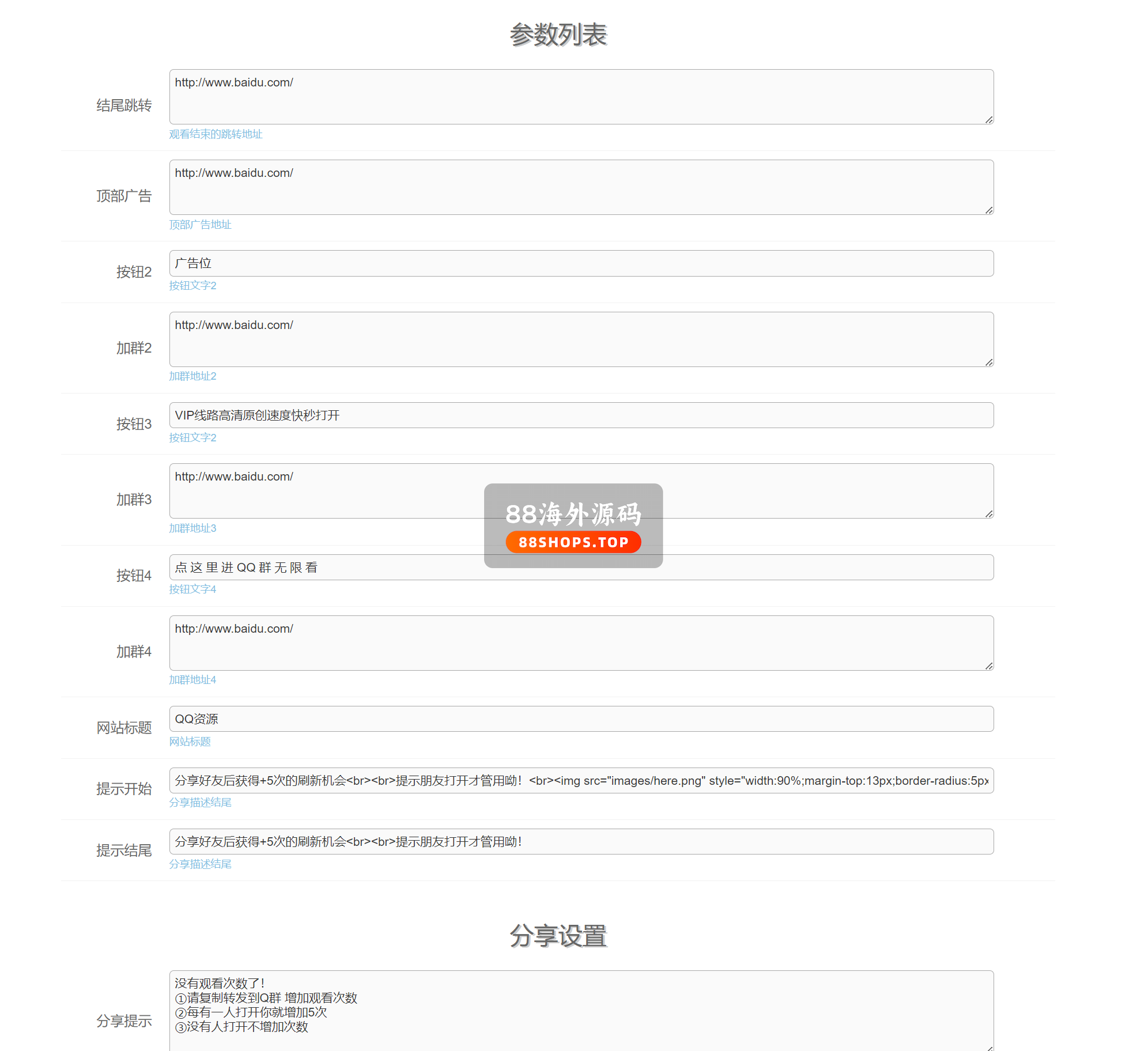 里面带观看次数设置,用户达到观看次数后需要分享给好友或者群,好友点击推广链接后才会增加次数。(已测试完美无错可用)