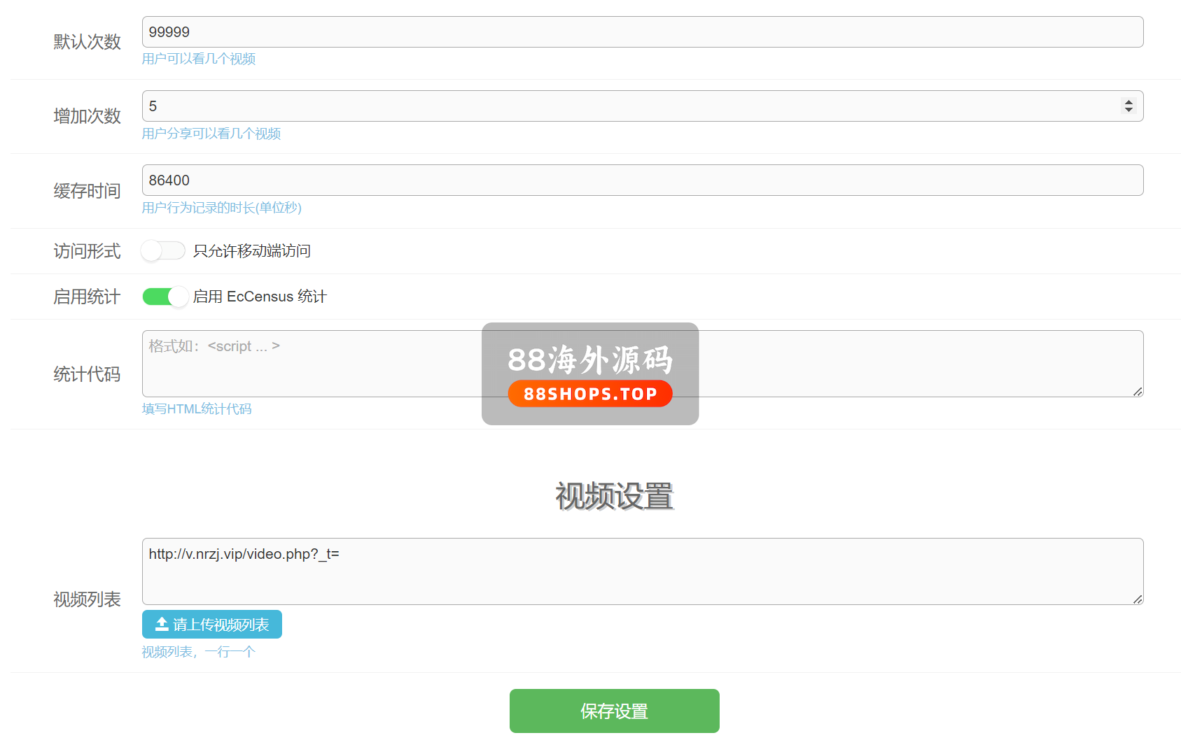 视频无需上传,给大家找了一个解析接口,只需在后台视频地址,复制此接口到视频地址列表即可。