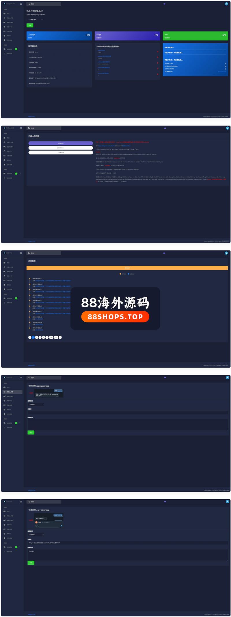 系统支持多个添加机器人、支持关键词回复、支持设置按钮回复、支持个人、群、频道等的消息处理,另外支持消息定时推送。