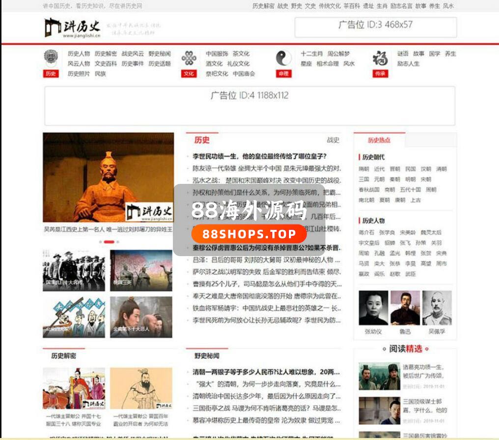 帝国CMS 7.5仿《讲历史网》模板,优秀的历史网帝国CMS模板。支持火车头采集源站自动更新