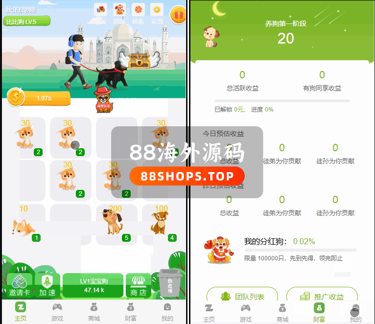 里面高的等级是38级别,分别有着分红狗、红包狗、合成狗
