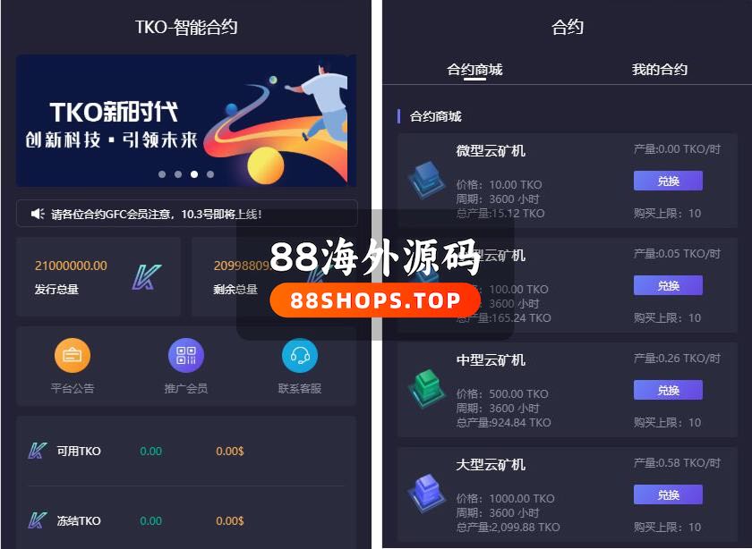 亲测全新UI改版超漂亮区块链合约交易平台多币矿机系统源码