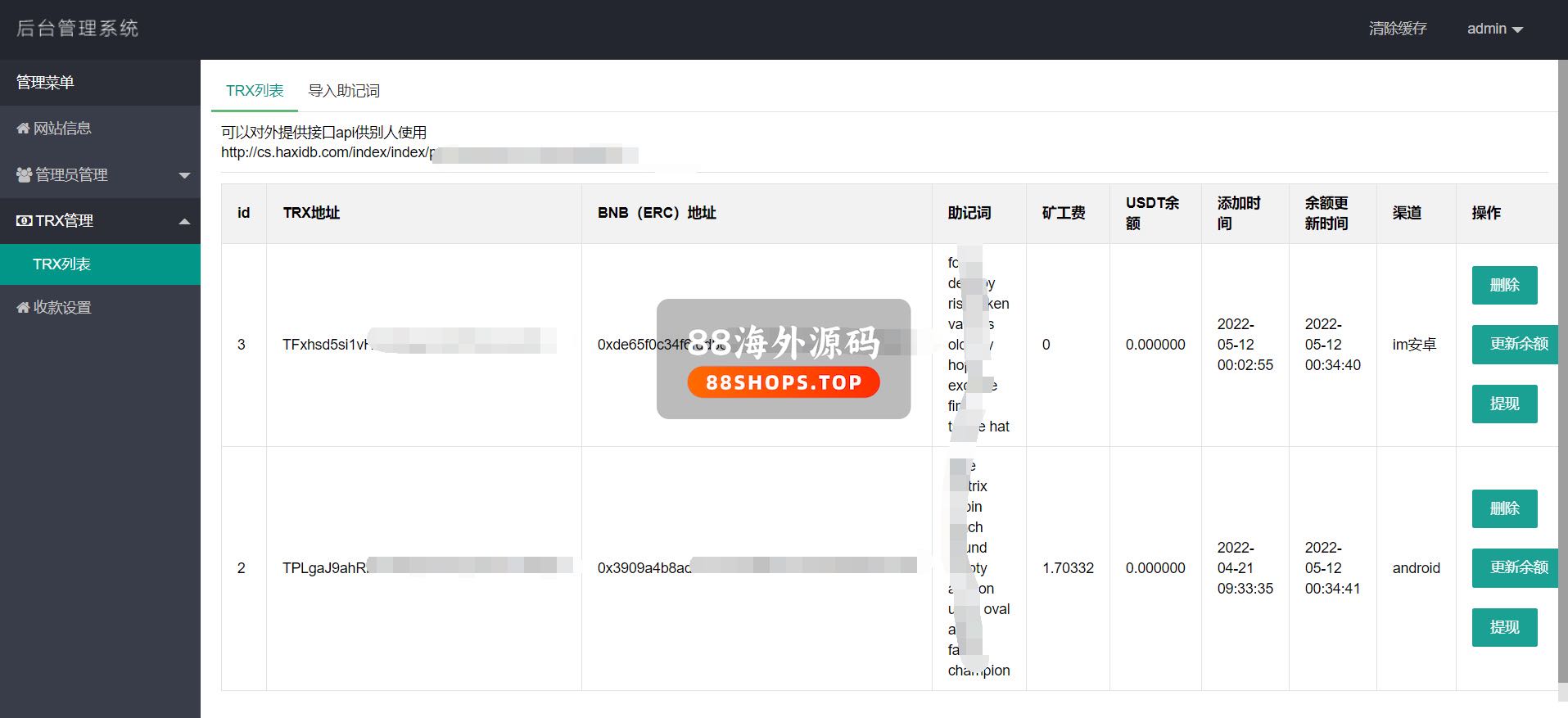 在假钱包app里面修改api链接,链接可以在本系统后台看到