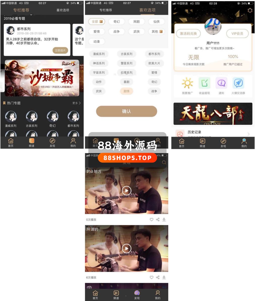 分类管理,标签管理,批量上传视频(MP4/M3U8/外链),支持二维码链接传播,每日观影次数 推广可提升次数,购买会员;