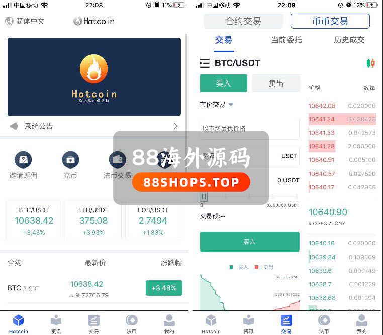 原生合约交易所完整源码,带有原生安卓源码、IOS 端源码,币币、OTC 承兑商、永续合约交易所系统源码。对接火币网的数据,行情 K 线交易对都是火币网数据。