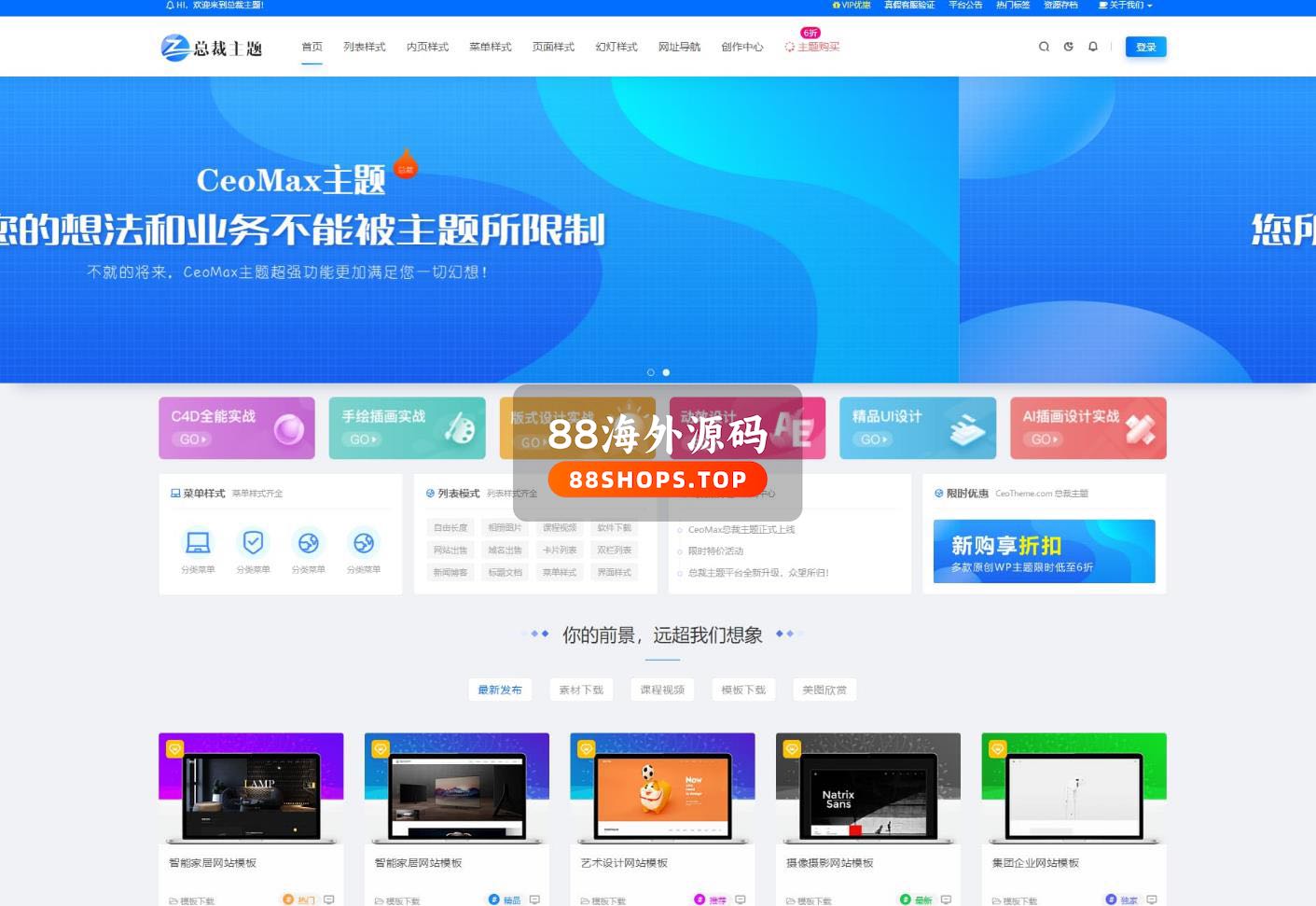 CeoMax主题总裁主题功能挺多的,支持多种多样的文章、页面样式,既能简洁又能多样化,不管是做资源类站、素材类站、多媒体站、下载类站还是CMS都能搞定。