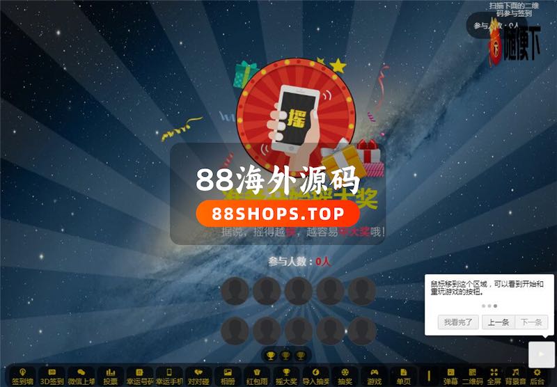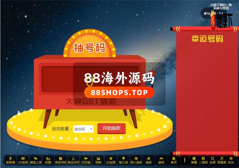 含签到墙+3D签到+微信上墙+投票+幸运号码+幸运手机号+对对碰+相册+摇大奖+开幕墙+闭幕墙+弹幕+10多款互动游戏+红包雨等全功能模块,没任何功能使用限制,更不会有域名授权或者加密,绝对是今年年会必备神器。
