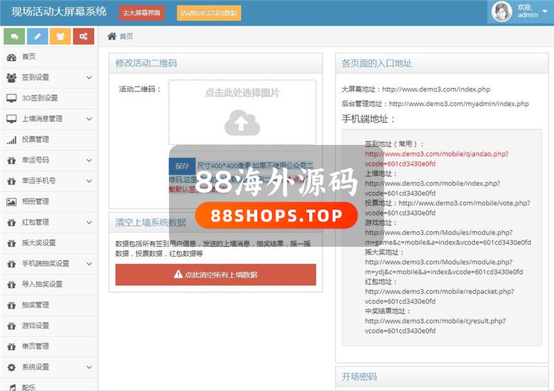 2024修复版PHP活动现场大屏幕互动系统源码 带微信上墙+3D签到投票抽奖+互动游戏+红包等功能