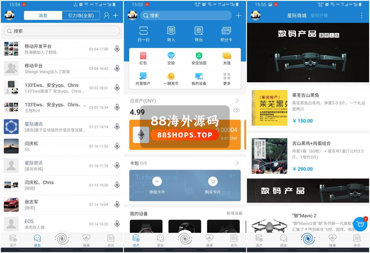 源码简介与安装说明: 星际通讯是基于区块链的价值共享互联网即时通讯应用平台,是一个去中心化的任何人都可以使用的通讯网络,是一款基于区块链的价值共享互联网即时通讯APP。星际通讯系统为人与设备、人与人、人与服务、服务与设备等提供高效、稳...