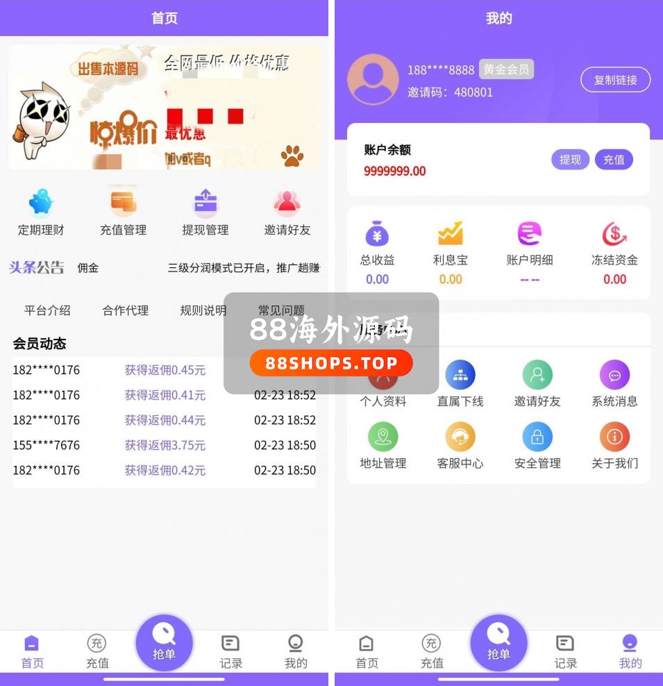 17.会员等级系统,支持各级会员收益比例与每天接单数量。自由设置各级会员提现手续费,自由设置开通会员价格