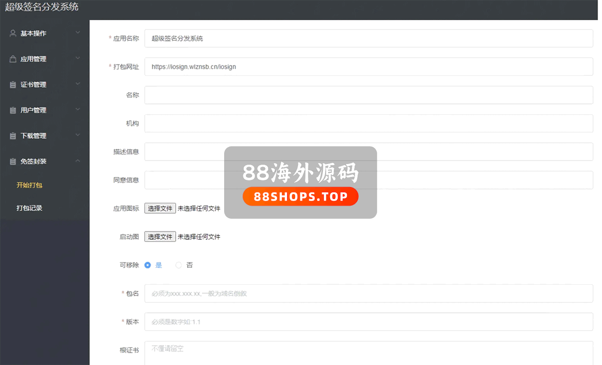 基于Java语言开发,。支持用户自行上传证书,支持阿里云oss和七牛云存储,支持下载记录统计,支持iOS免签封装和APK封装打包