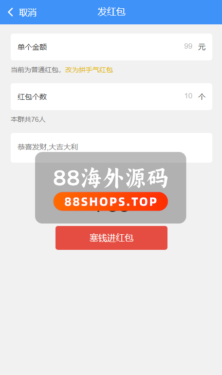 2、增加红包发送2种方式(拼手气红包和固定金额红包)