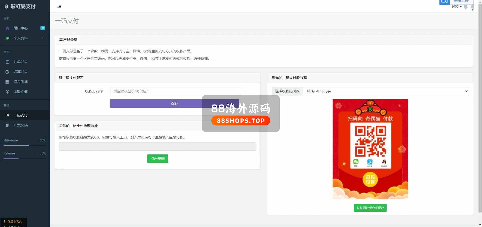 此版本为彩虹易支付原作者二开版本,新加了很多功能,新功能:API退款,轮训支付,网银支付,京东支付,