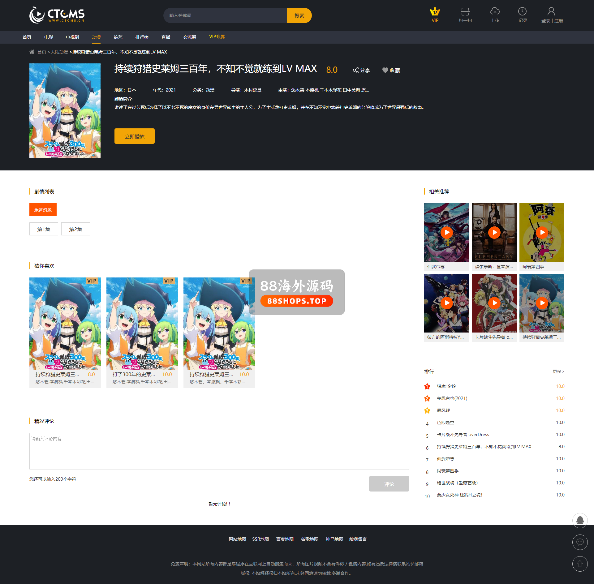 Ctcms影视系统(Ctcms video system) 是一套PHP+Mysql开发的视频管理系统,采用CI框架核心开发,体积小、运行快,强大缓存处理,自主研发的模板引擎标签简单易用, 后台支持一键增加视频, 附带官方资源库,支持会员点播、包月观看,点卡、广告、在线支付、留言求片、友情链接,只要略懂HTML的就可搭建一个强大的视频网站