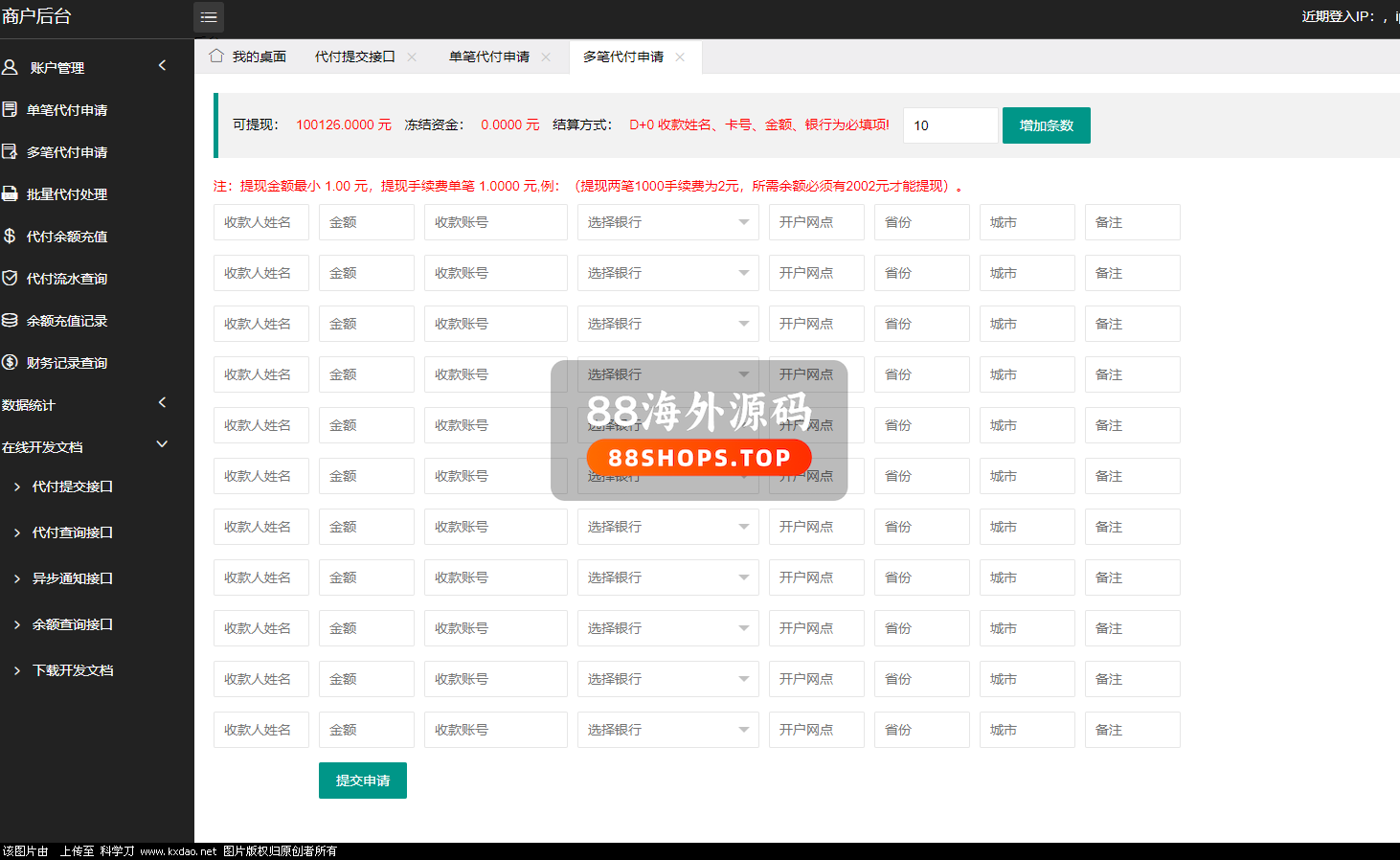 2:系统支持单笔代付以及批量代付