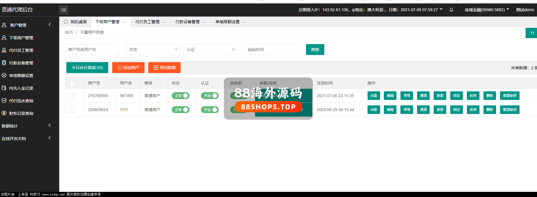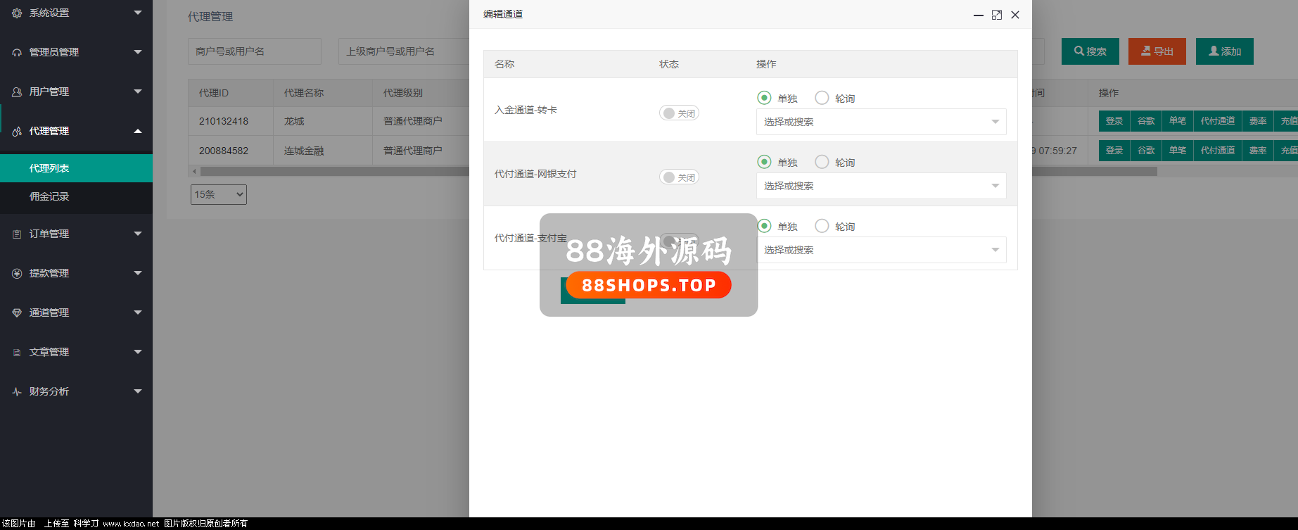 7:系统分为:后台-代[过滤]理-代付员工-商户