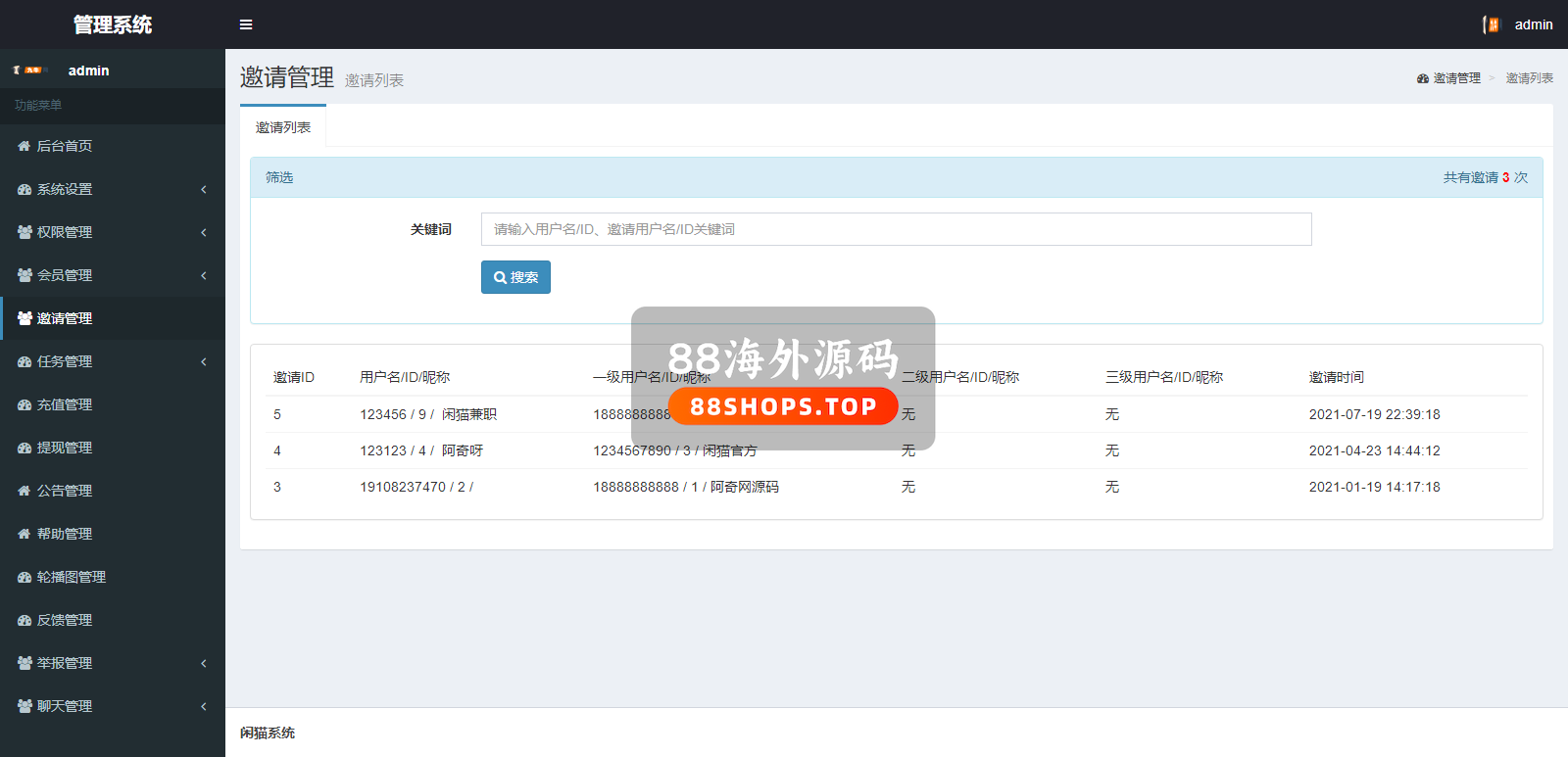 9、支持三级分销功能、邀请海报、链接邀请、二维码邀请、自动识别并绑定邀请码(比如我分享给您链接,打开之后系统自动识别自动填写邀请码,无需手动填写)