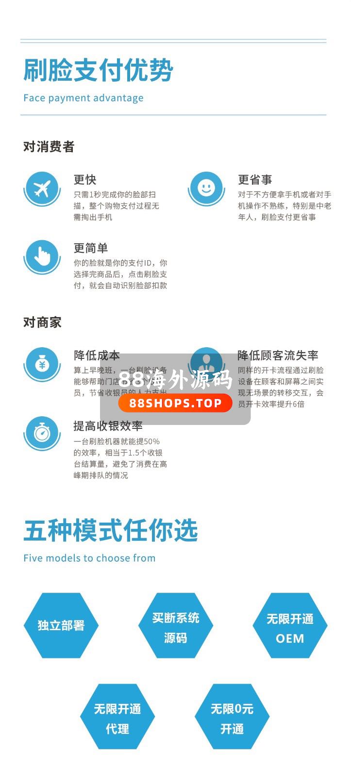 接下拨分润。刷脸支付结算费率为0.2%,市场上的费率为0.6,在后台可调整商户费率;当面付可把个人支付宝升级为商户版,可做跳转支付。可解决市场上很多个人免签支付被封的问题。依托通道当面付收款金额不限;.