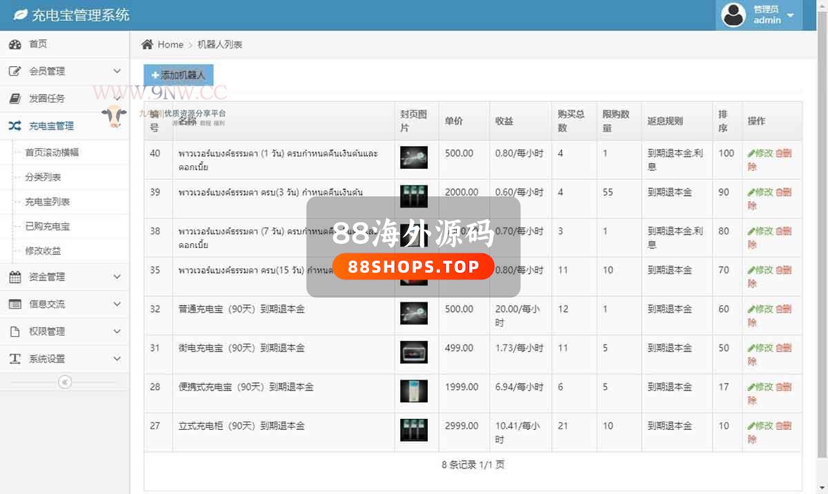 最新二开双语言(中文、泰语)共享充电宝源码。一款会赚钱的充电宝/小微投资/收益日结。