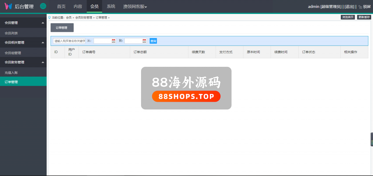 账户中心-充值续费订单信息