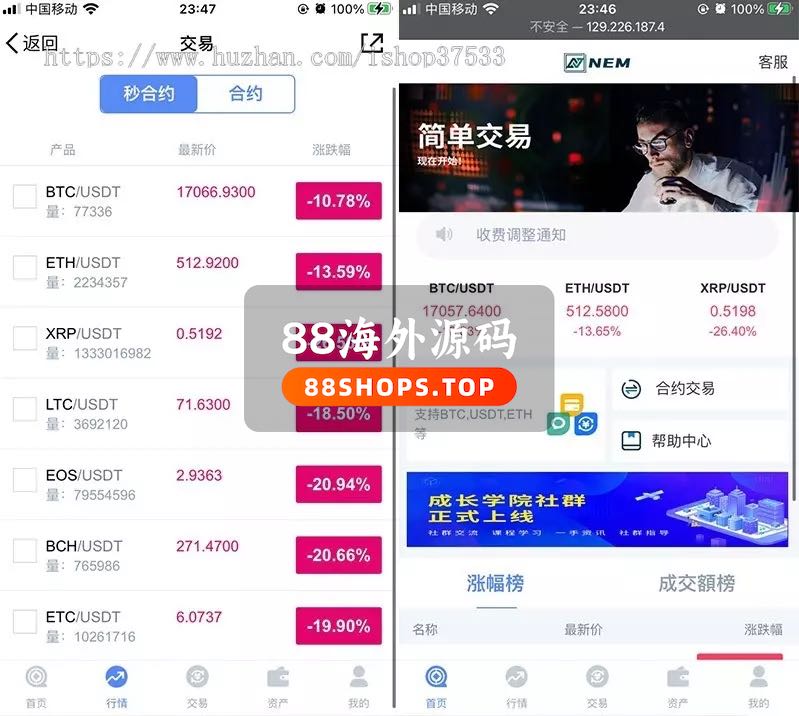 完整无缺整站打包,行情正常(需境外服务器)。简单看了下有两个前端 m和wap,具体自行研究。