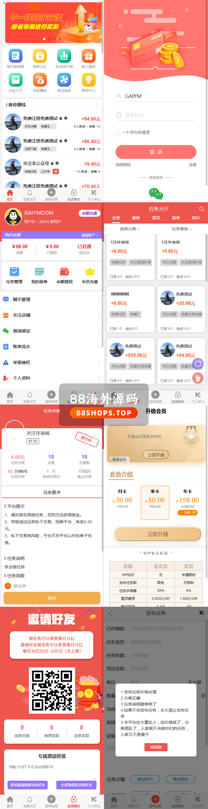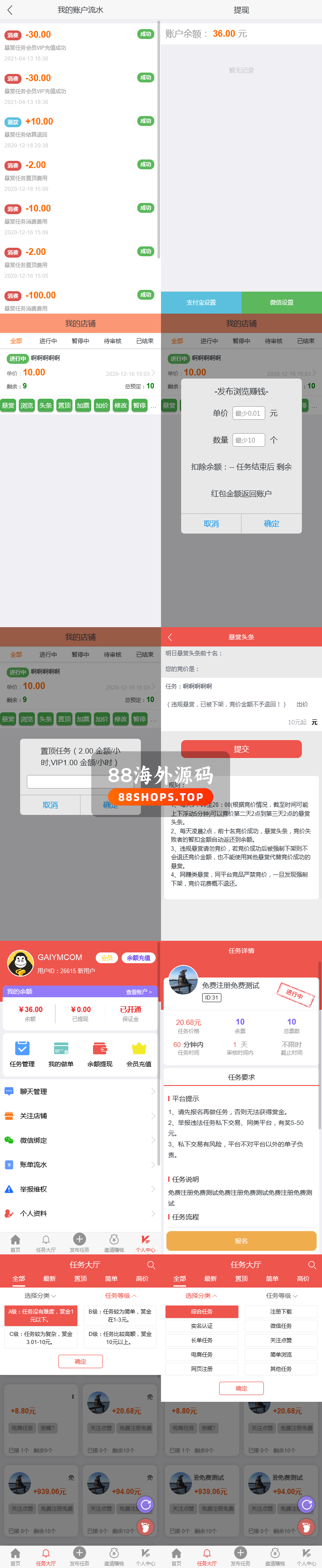 2021全新开发悬赏任务兼职系统,仿蚂蚁帮扶众人帮平台,功能齐全,包含接任务,发布任务,店铺关注,置顶推荐,排行榜,新人福利,红包大厅,红包抽奖,任务步骤,微信绑定,分销推广,举报维权,vip会员特权等众多功能,已有客户上线运营,支持微信绑定登陆。带APP推广页