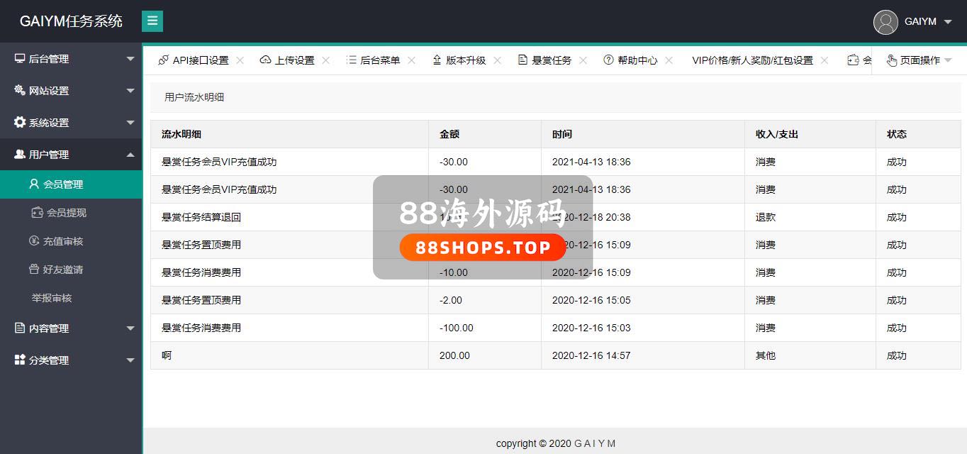 2.顶置,vip会员VIP,我的店铺,关心归类,分紅.微信登陆