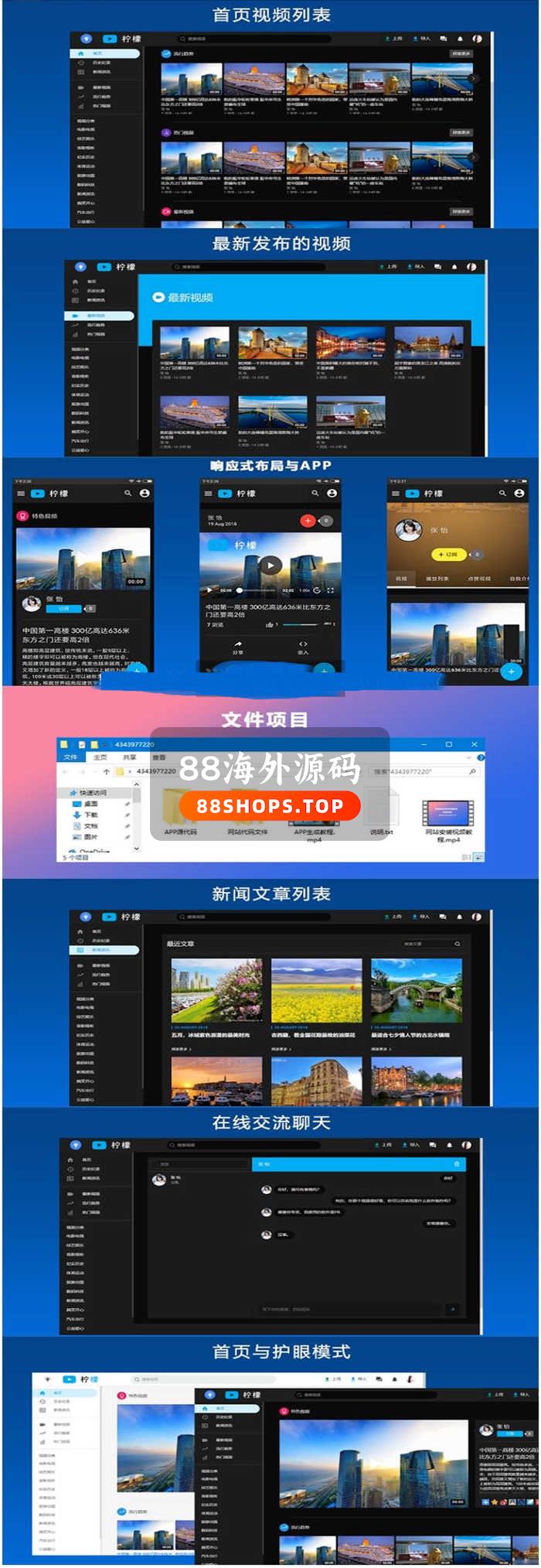 此源码是一款视频网站系统,你可以用这个来快速搭建自己的视频网站,安装简单、界面简洁、易于使用。用户可在网站上面注册登陆上传视频、发布评论与收藏视频,系统带护眼模式,有利于保护眼睛,与此同时提供了后台管理,管理员可以进行网站名称,logo等设置。网站采用响应式设计,因此不论你在什么设备浏览网站,都有非常好的体验。