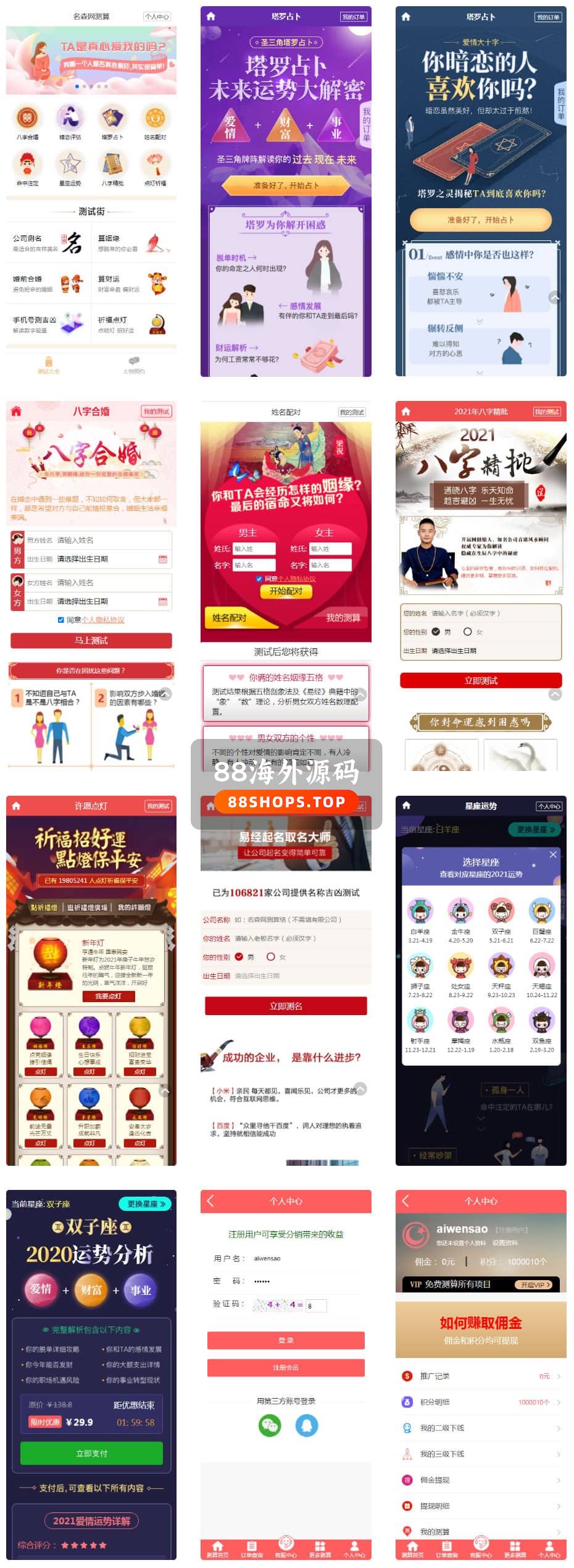 2021第三版付费测算PHP源码 星座运势+月老姻缘+起名算命+塔罗牌+牛年运程+宝宝起名,内附安装说明PHP开发的,星座运势塔罗牌牛年运程宝宝起名姻缘等