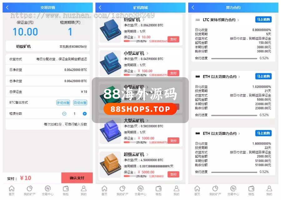 6.后台可自定义矿机,自定义合约交易,总之功能非常完善,新手小白也可上线运营!