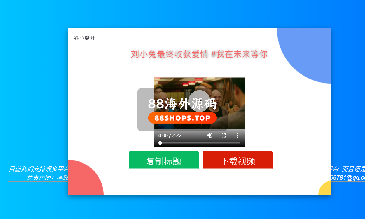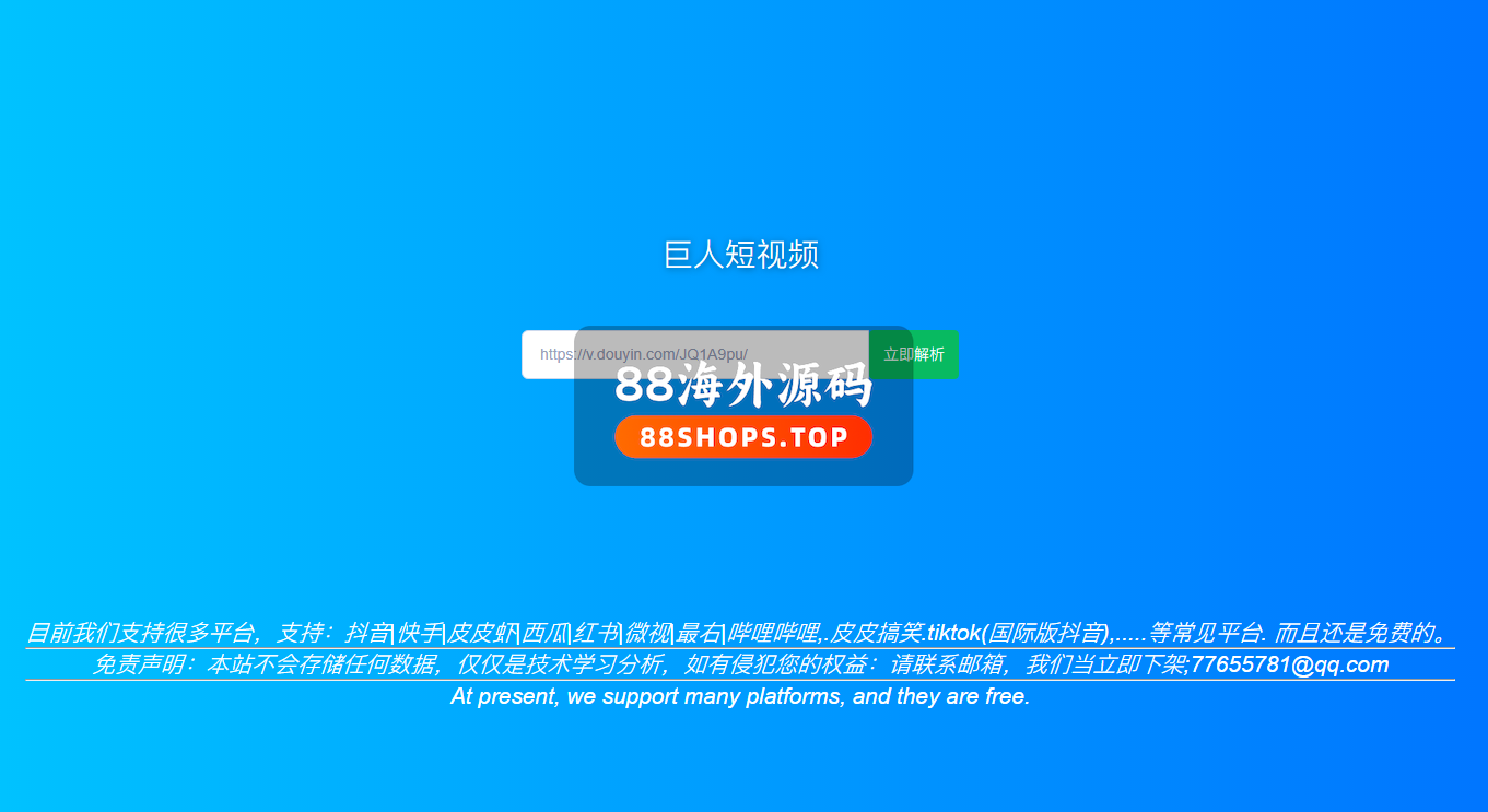目前支持很多平台,支持:抖音|快手|皮皮虾|西瓜|红书|微视|最右|哔哩哔哩,.皮皮搞笑.tiktok(国际版抖音),…..等常见平台. 而且还是免费的。源码从巨人短视频网站爬取的,可以随便调用。