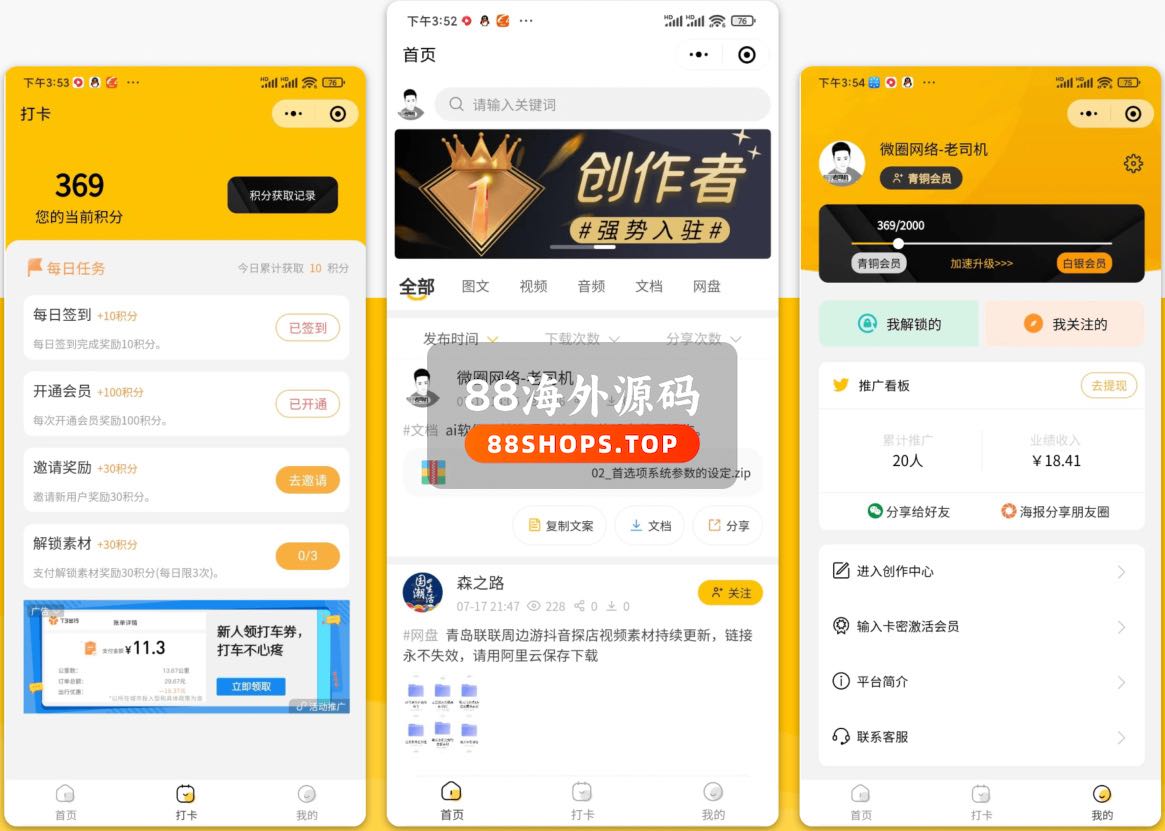 支持:视频,音频,图文,文档,会员,社群,用户发布,创作分成,任务裂变,流量主,在线下载等,更多功能正在不断更新中···