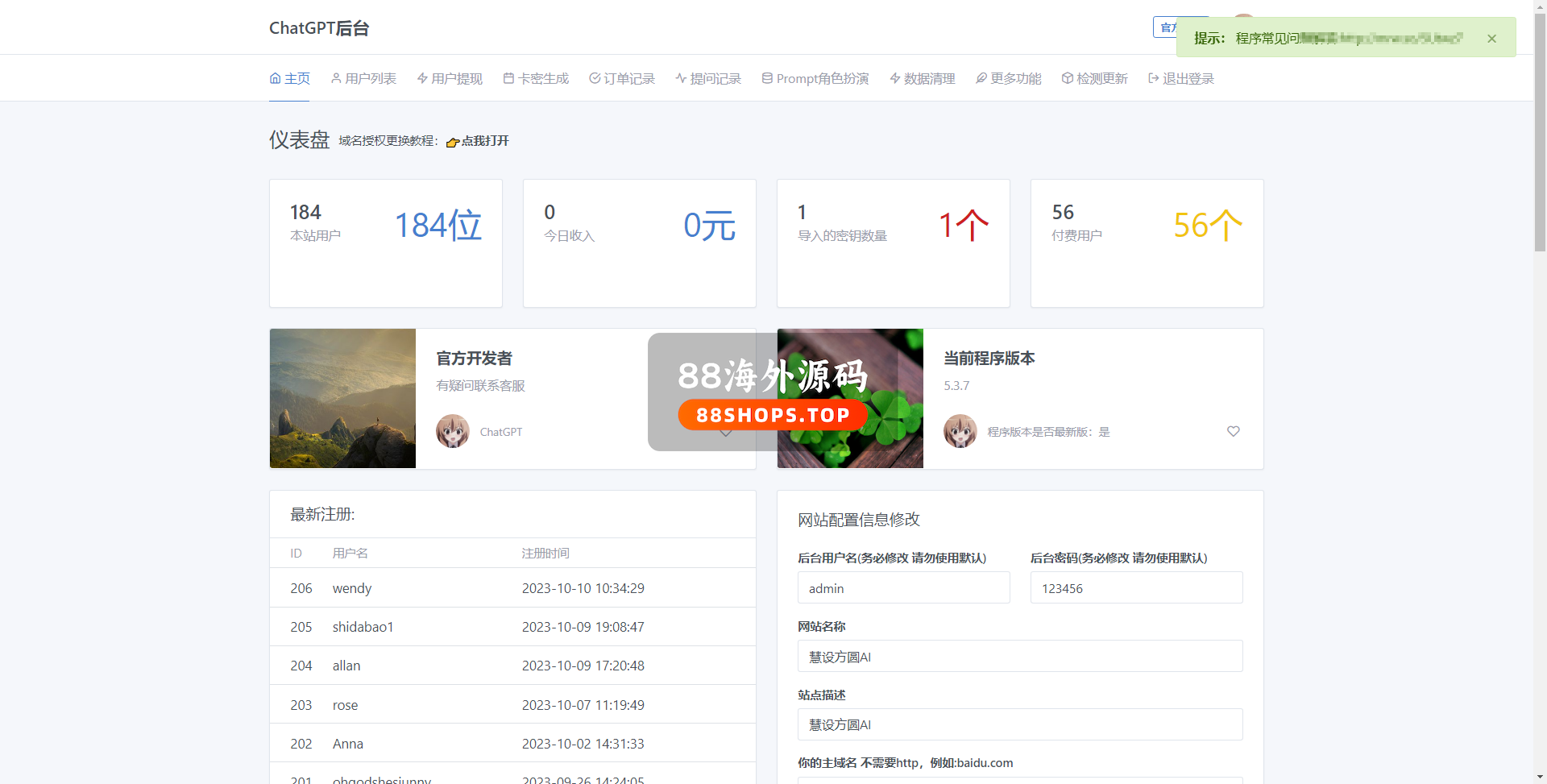 登录之后可购买付费套餐,也可以关闭整站收费功能,具体到后台设置里面自己去看吧