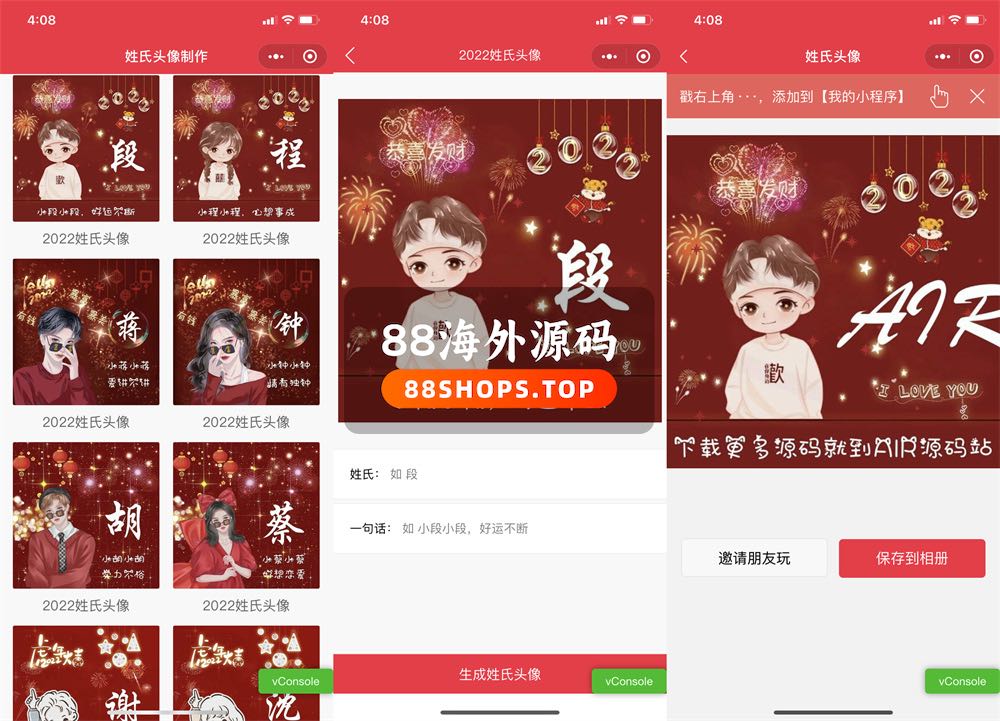 2024全新姓氏头像制作多模板小程序源码_支持多种流量主模式