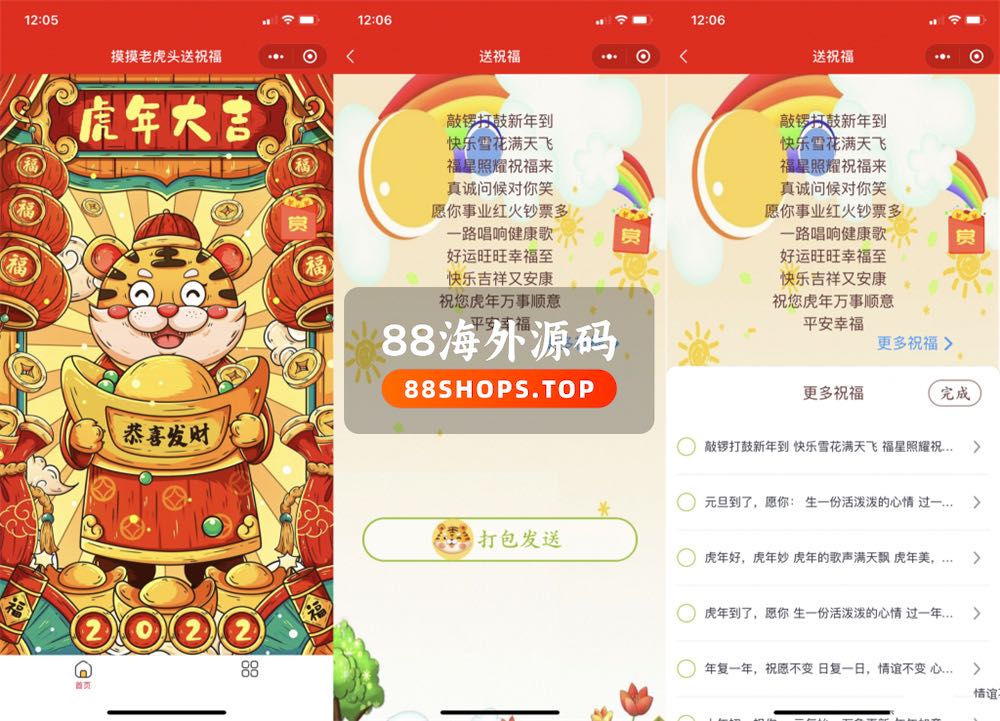 里面的背景图包括祝福语都已经修改成与虎年相关的内容了