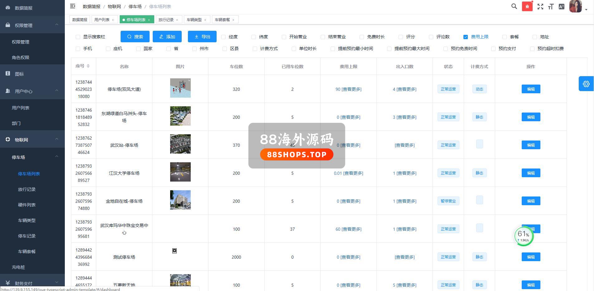 【功能介绍】:①本停车场系统兼容市面上主流的多家相机,理论上兼容所有硬件,可灵活扩展,②相机识别后数据自动上传到云端并记录,校验相机唯一id和硬件序列号,防止非法数据录入,③用户手机查询停车记录详情可自主缴费(支持微信,支付宝,银行接口支付,支持每个停车场指定不同的商户进行收款),支付后出场在免费时间内会自动抬杆。④支持app上查询附近停车场(导航,可用车位数,停车场费用,优惠券,评分,评论等),可预约车位。⑤断电断网支持岗亭人员使用app可接管硬件进行停车记录的录入。【技术架构】:后端开发语言java,框架oauth2+springboot2+dubbo,数据库mysql/mongodb/redis,即时通讯底层框架netty4,安卓和ios均为原生开发,后台管理模板vue-typescript-admin-template