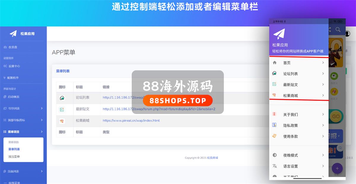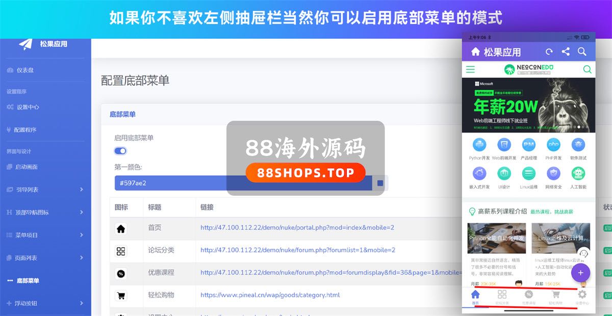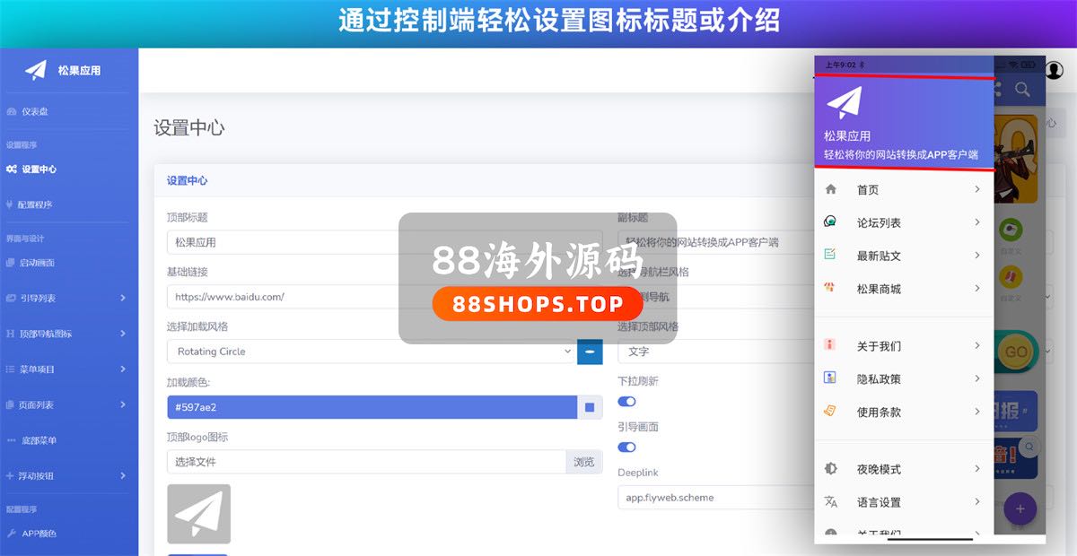 这是一款网站转换成APP的源代码,开发语言使用Flutter,开发工具使用的是AndroidStudio,你只需要在APP源代码里面填写你的域名,即可生成即可生成APP,包括安卓或者苹果,与此同时我们提供了APP的控制端.你可以通过控制端设置APP的颜色、添加APP的图标、添加APP的菜单栏目。添加或者编辑底部菜单或者悬浮按钮等等,当用户点击相关的栏目会跳转到你设置的相关链接。当然我们也提供了视频教程你可以按照视频教程一步一步的部署即可。