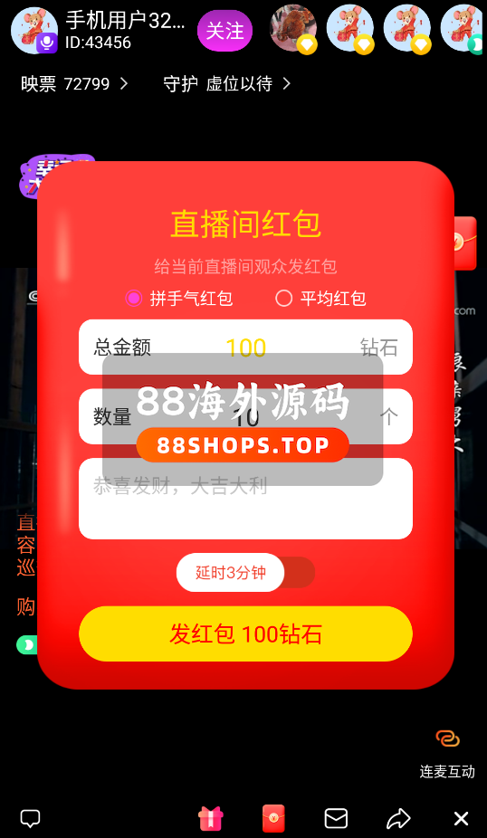 4.每日在线任务,直播间红包,直播连麦,直播pk,会员靓号坐骑