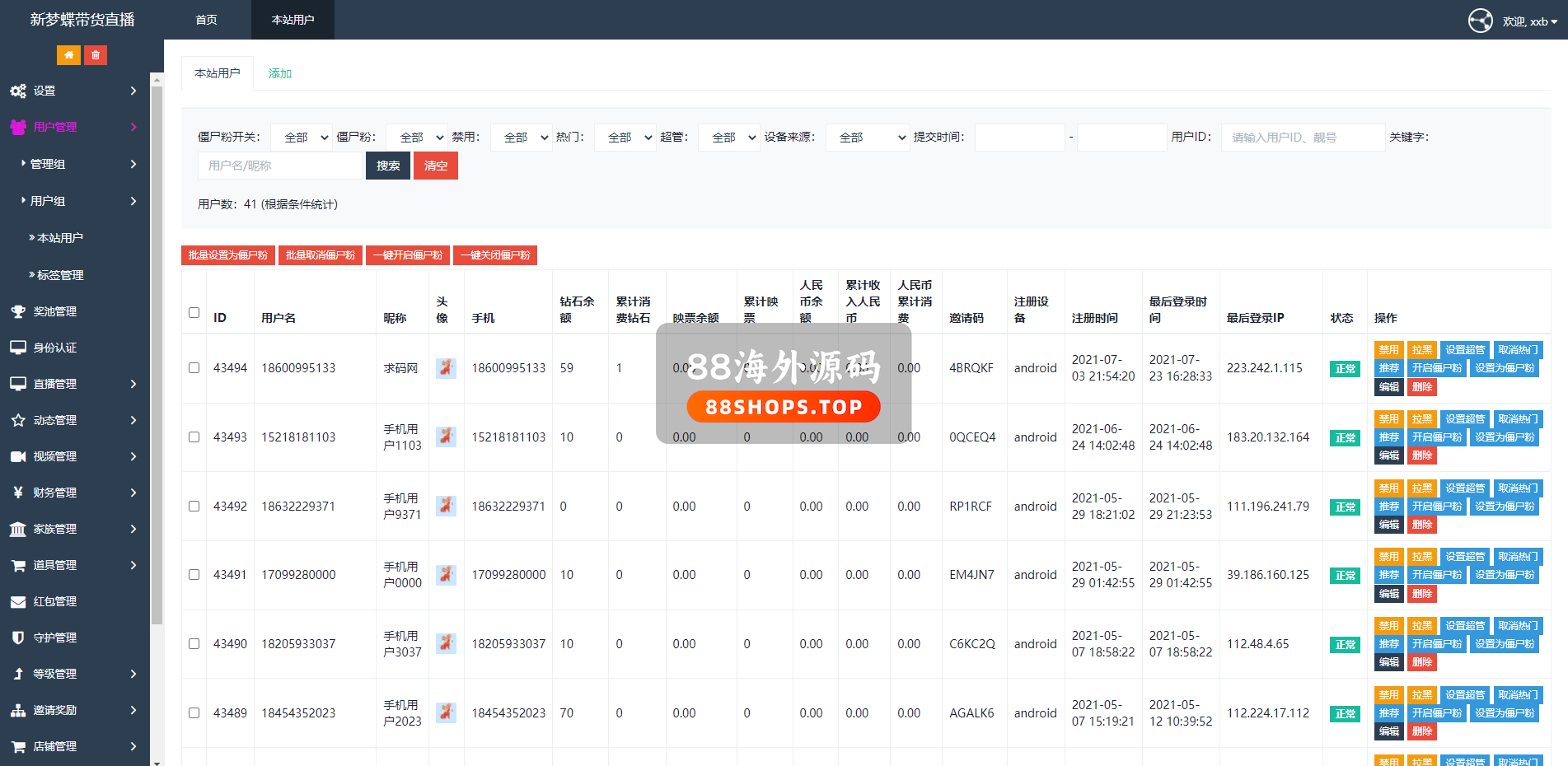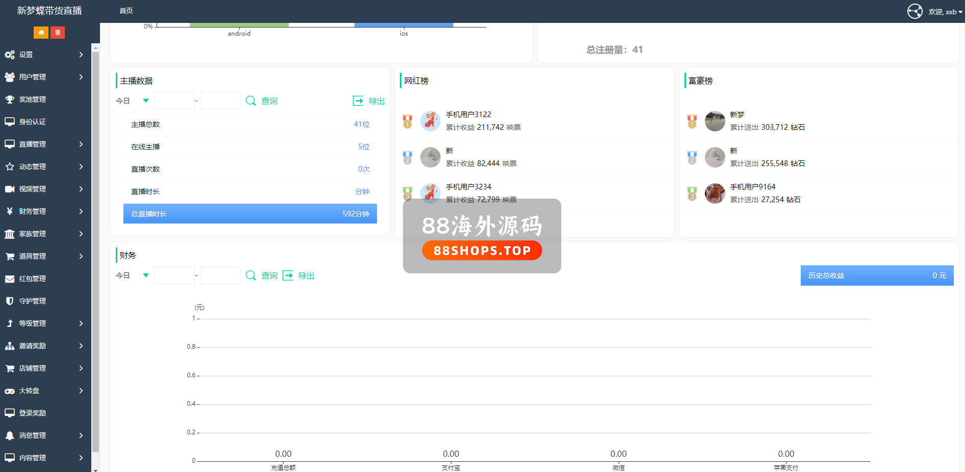 5.店铺可设置审核模式 免审核模式缴纳开店保证金等等,夜间模式,直播低延迟
